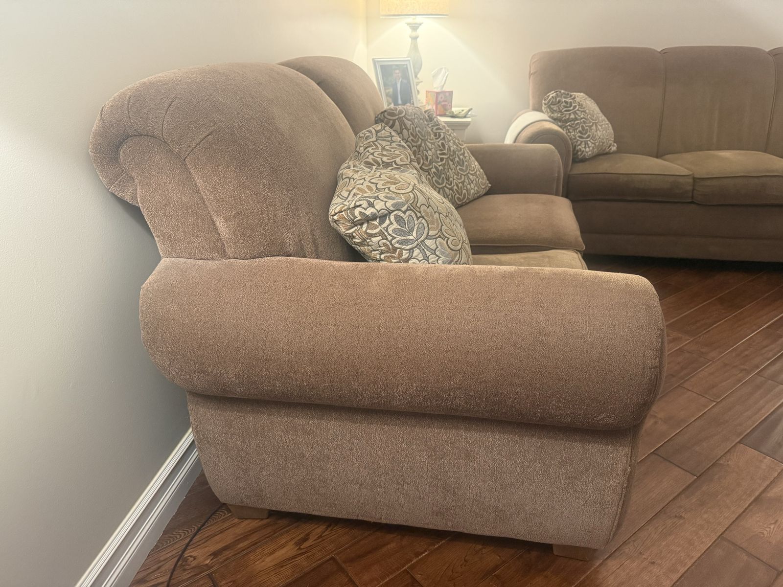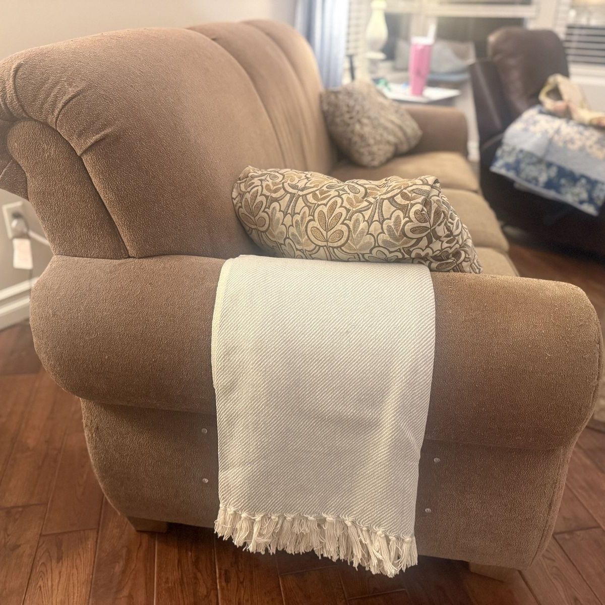 VenmoUsed couch and loveseat. We had these custom ordered and were able to pick fabric and pillows from Fishers Home Galleries in South Dakota. These have been great couches and have life still to live! We just purchased new leather couches so need to get rid of them. The couch is 85”X39”roughly and loveseat is 63”X39”. Each couch has 2 pillows each. Some wear and tear.