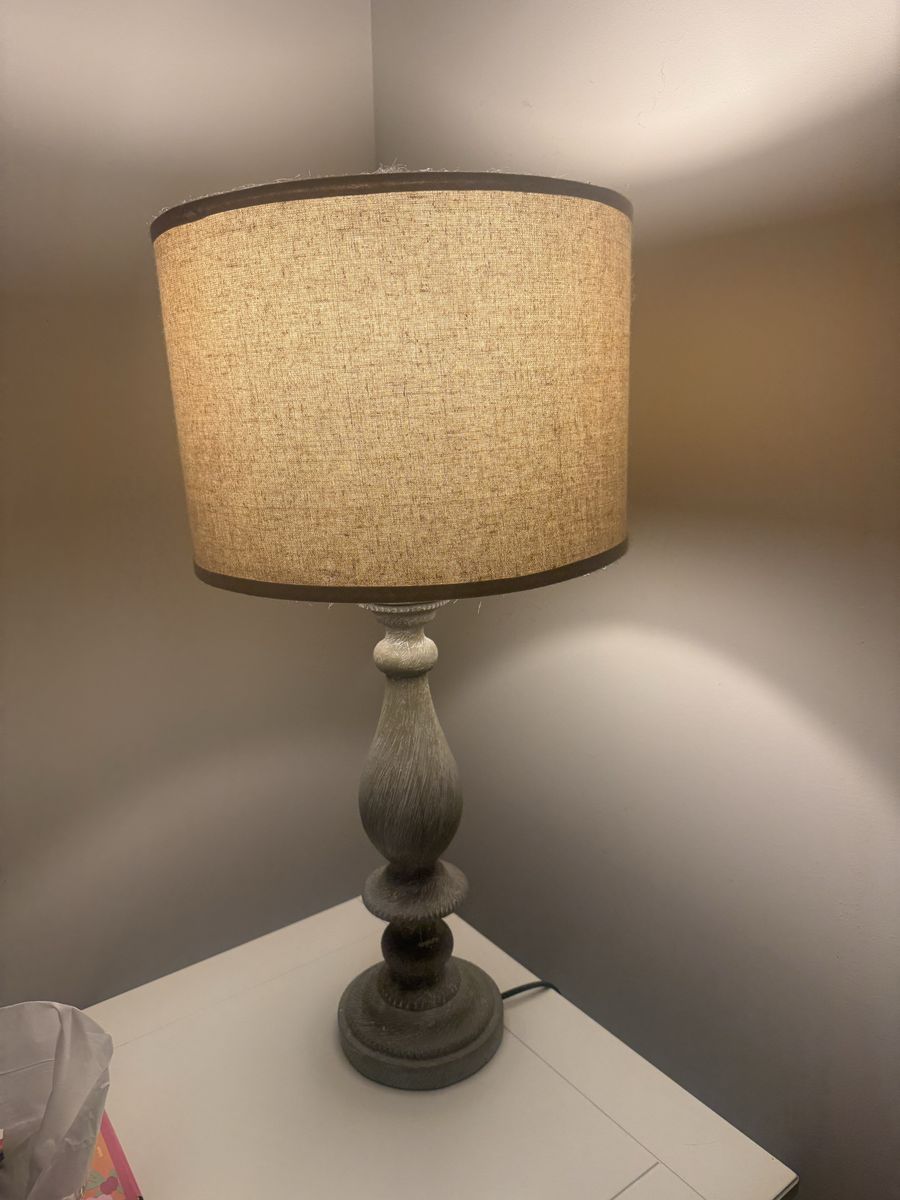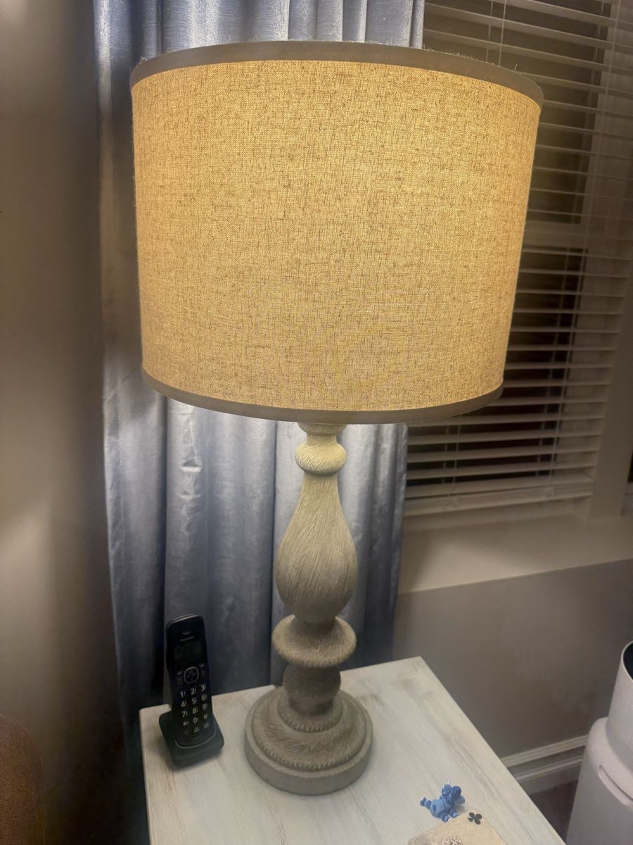 Made of cast resin with fabric drum shade 3-way switch 1 type A bulb (not included); 150 watts max or LED equivalent; UL Listed Clean with a soft, dry cloth