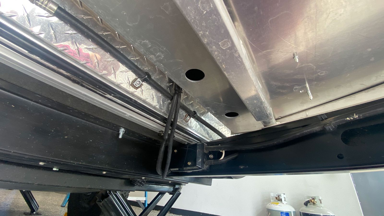 Split solar and EcoFlow Delta 2 Max lithium 120V power system. Another solar panel was added and wired only to the lithium Ecoflow. This includes a shore power bypass that is super simple. No complex controllers, no complex battery system. This allows the AC and microwave to be used WITHOUT being on shore power or gas generator. This is integrated under the seat.This battery also has pass thru so if you are on shore power, it powers the lead acid batteries, entire trailer, and recharges the EcoFlow. Ecoflow systems charge extremely fast, and are far superior to onboard lithium systems like BattleBorn.NOTE: The EcoFlow DELTA 2 Max has a battery capacity of 2048Wh, a continuous output of 2400W (expandable to 3400W with X-Boost), and features six AC outlets, six USB ports, and a 12V car port. It can be recharged in about 1.1 hours using AC power or 2.3 hours with solar input.
