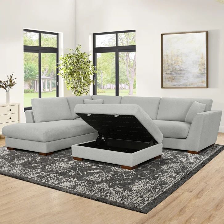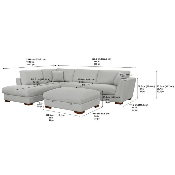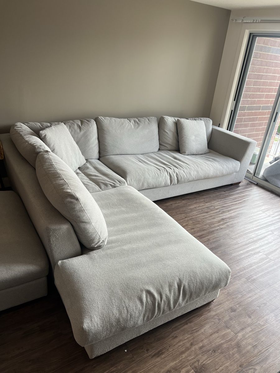 Henderson 2-piece sectional with right-side chaise in a light gray color. Super comfortable with deep seats.