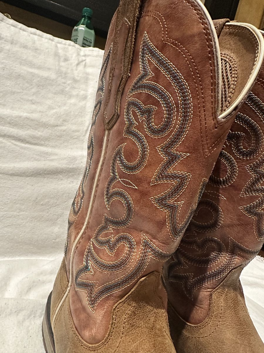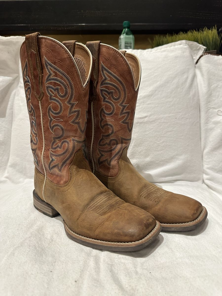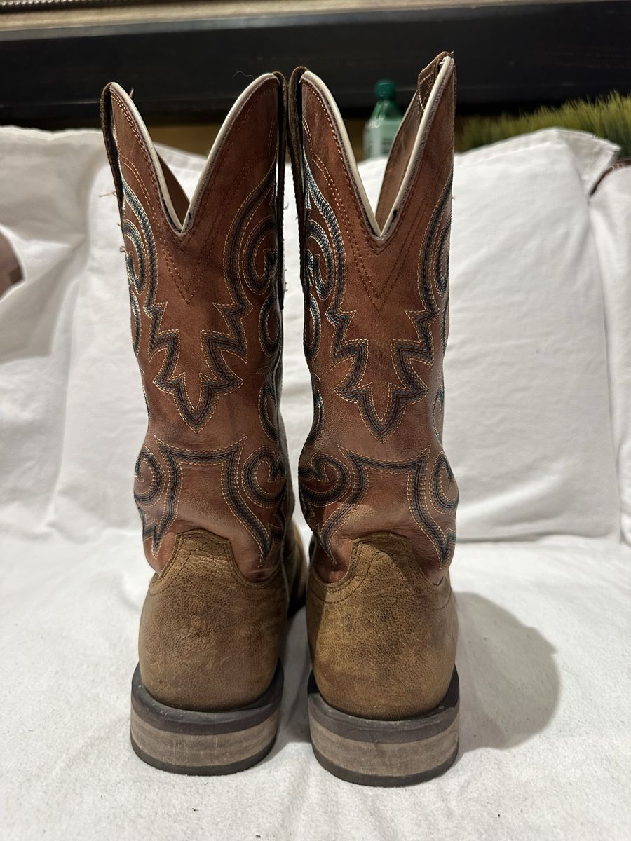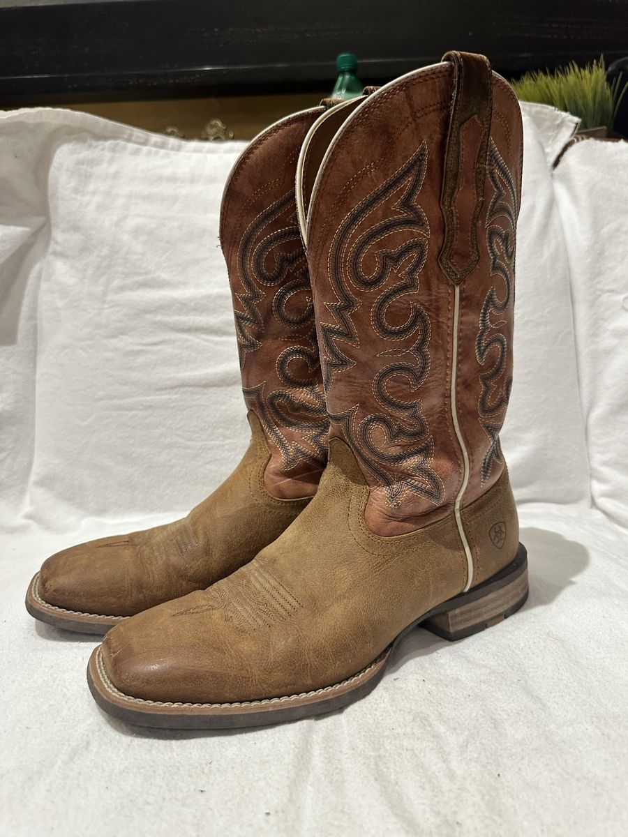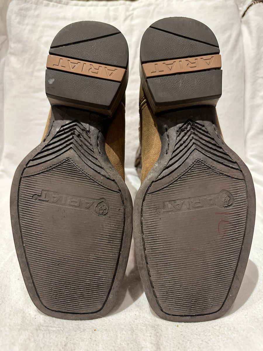 Ariat men’s size 8.5 D Brown, leather foot bed with rust leather embroidered uppers with square toes western boots. These are in good condition, see photos for details. I take cash or Venmo, but cash is preferred. Text is best. 801-201-4446. Check out my other ads for additional sizes and styles.