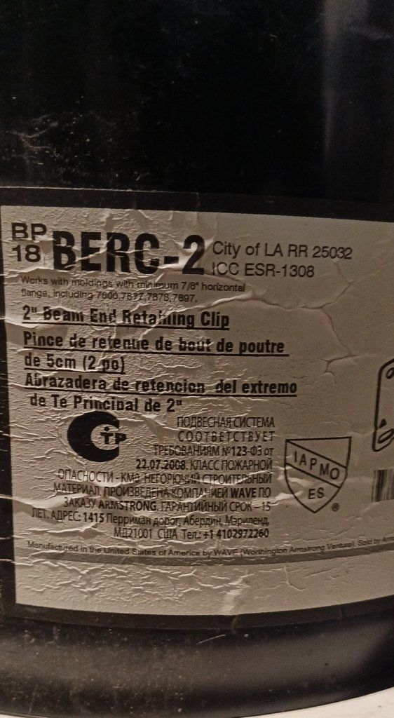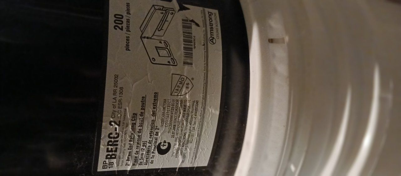 BERC-2 2" Retainer Clips 200 count new ,all 200 in bucket. used for drop ceiling installations .