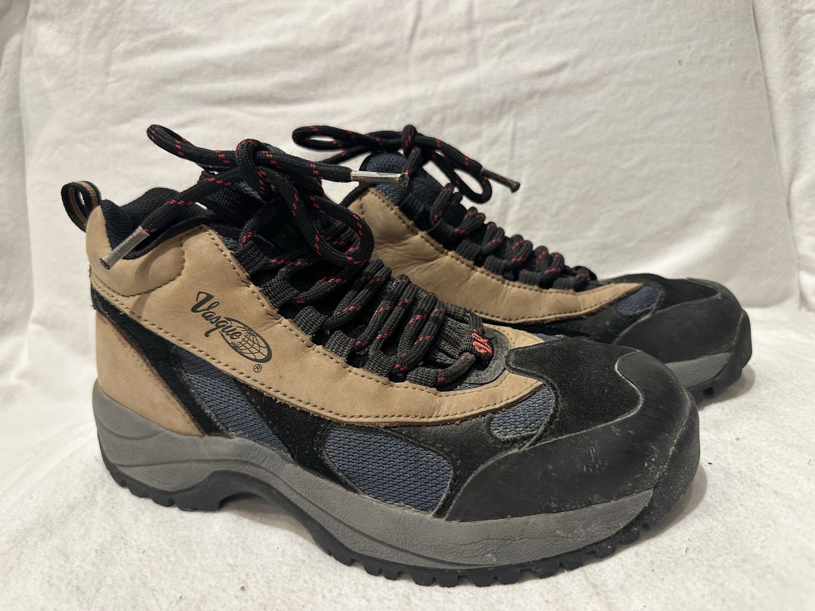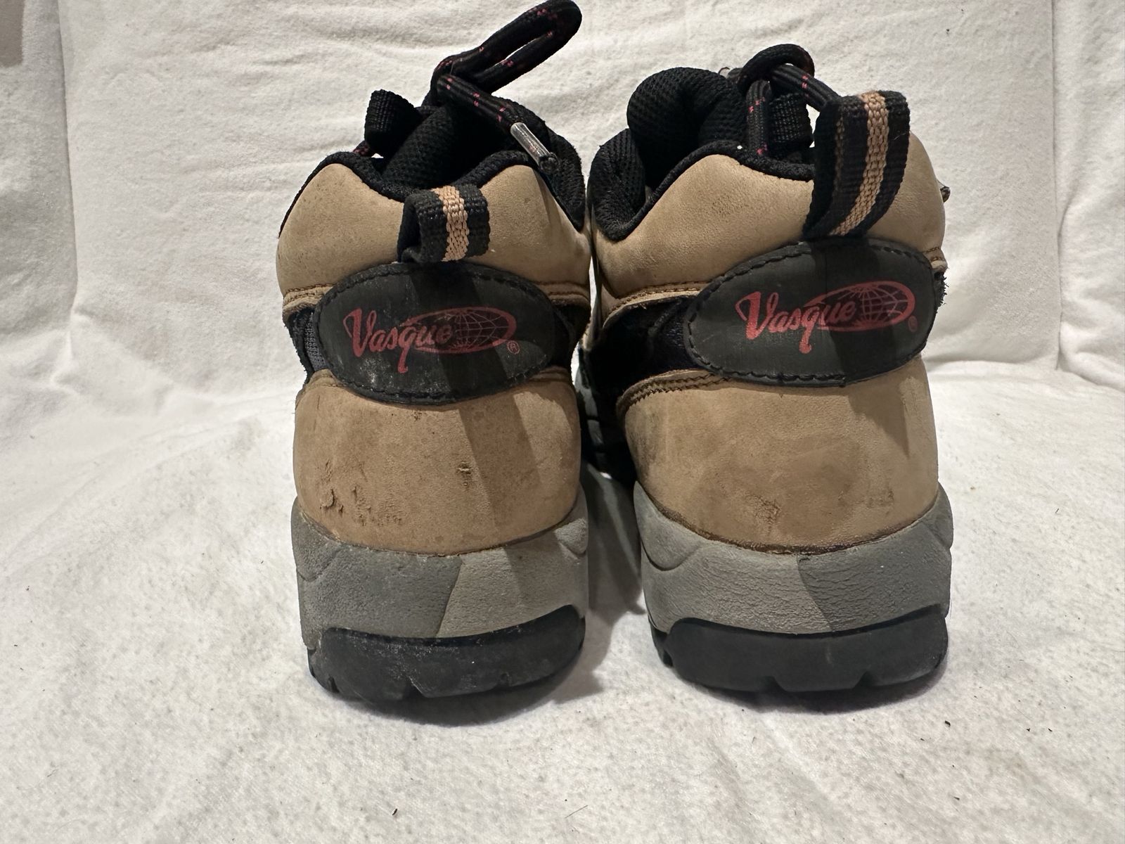 Vasque women’s size 8.5 beige/grey/black leather and textile mid hiking boots. These are in good condition, see photos for details. I take cash or Venmo, but cash is preferred. Text is best. 801-2014446. Check out my other ads for additional sizes and styles.