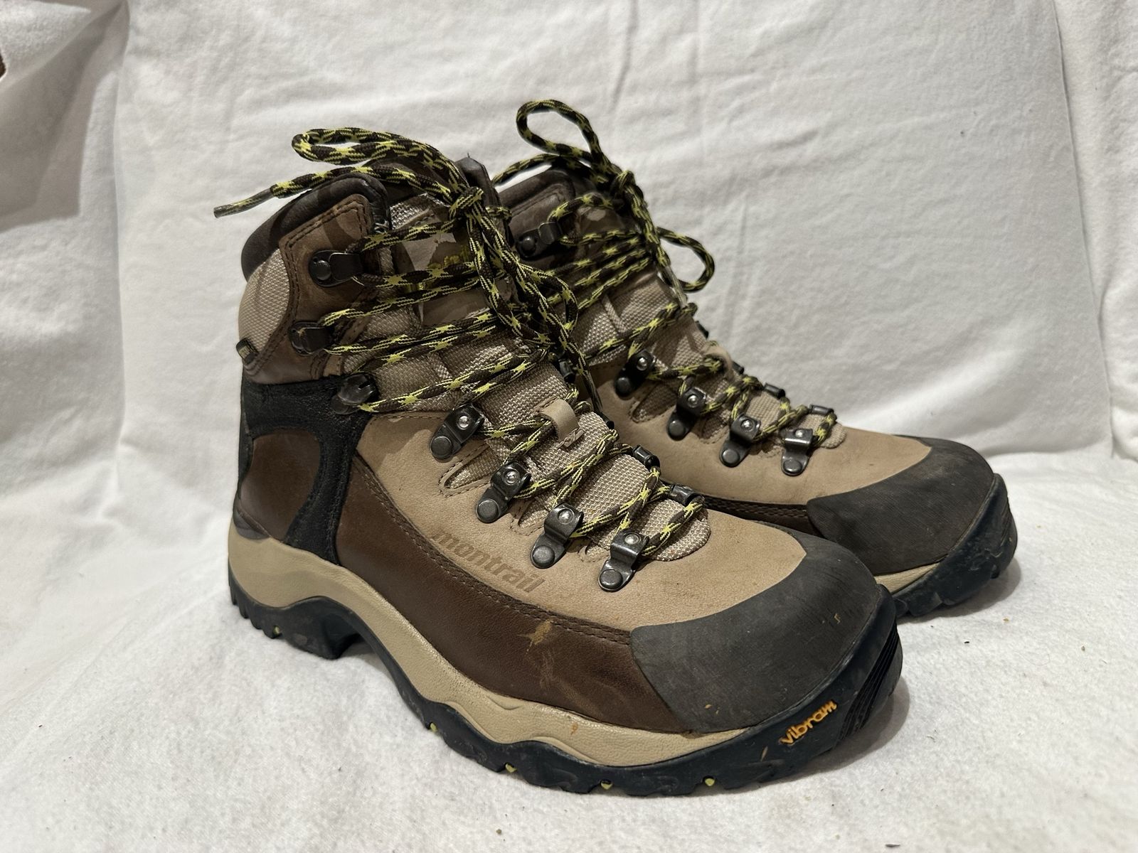 Montrail women’s size 8.5 feather peak goretex beige/brown leather and textile mid hiking boots. These are in good condition, see photos for details. I take cash or Venmo, but cash is preferred. Text is best. 801-201-4446. Check out my other ads for additional sizes and styles.