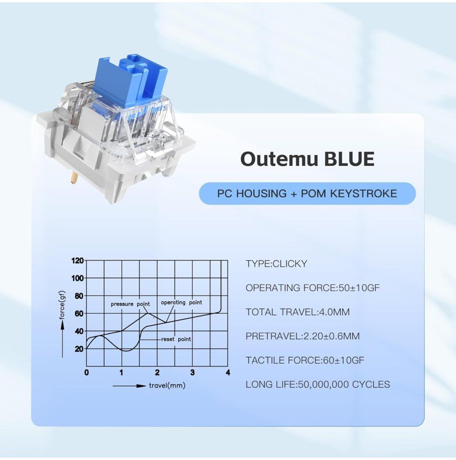 Redragon's OEM version has a black colored bottom housing instead of white, but other than that these are completely identical to the Outemu Blue's available on Amazon/elsewhere. (With exact specs shown in last picture). They will fit in any mechanical keyboard that uses CherryMX format switches. If your keyboard has backlighting just make sure the "slit" seen on the bottom of pic #2 is placed over the LED.