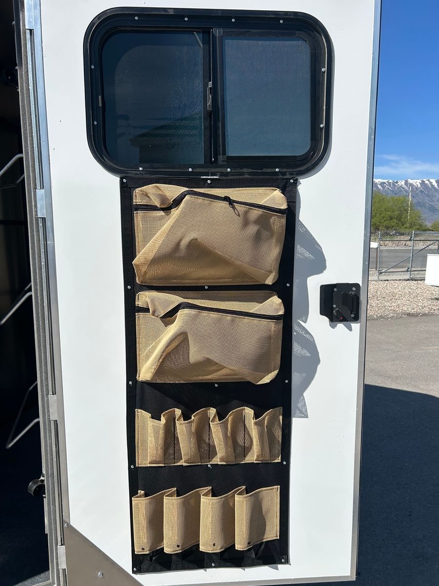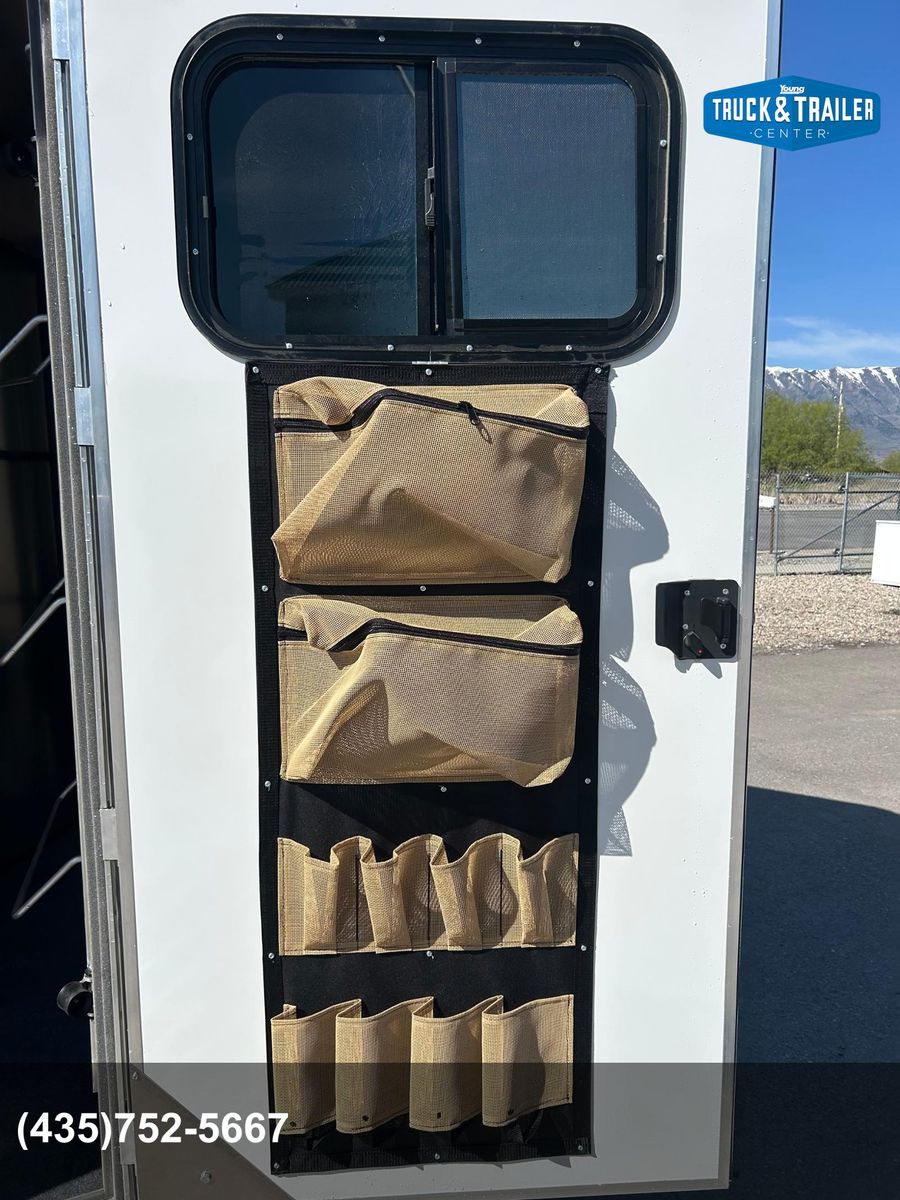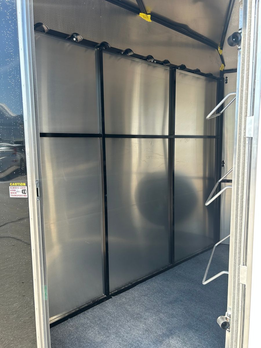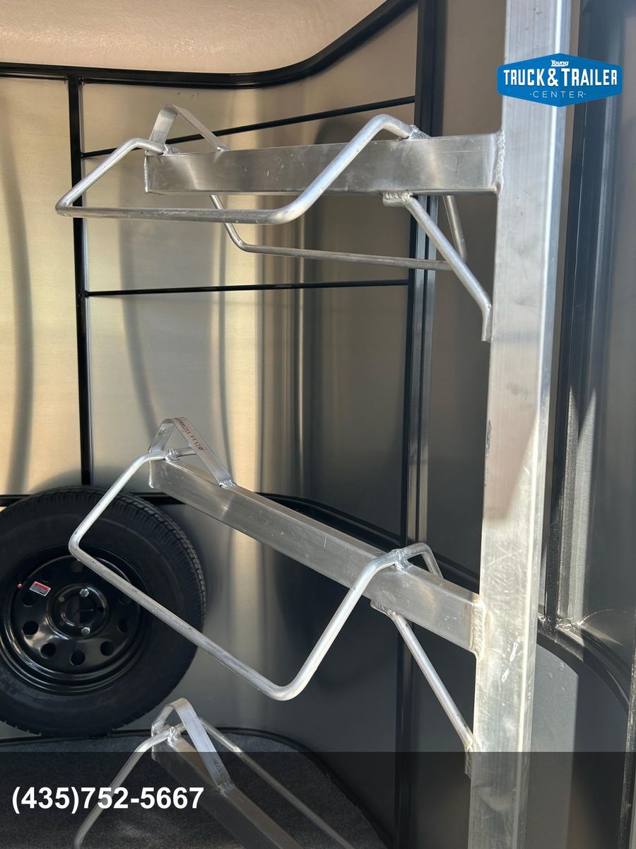 3 Horse Slant Load Front Sealed Tack Swing Out Saddle Racks Door Organizer Bridle Hooks Horse Area Has Floor Mats Aluminum Jail Bar Divider w/ Pad Spare Tire