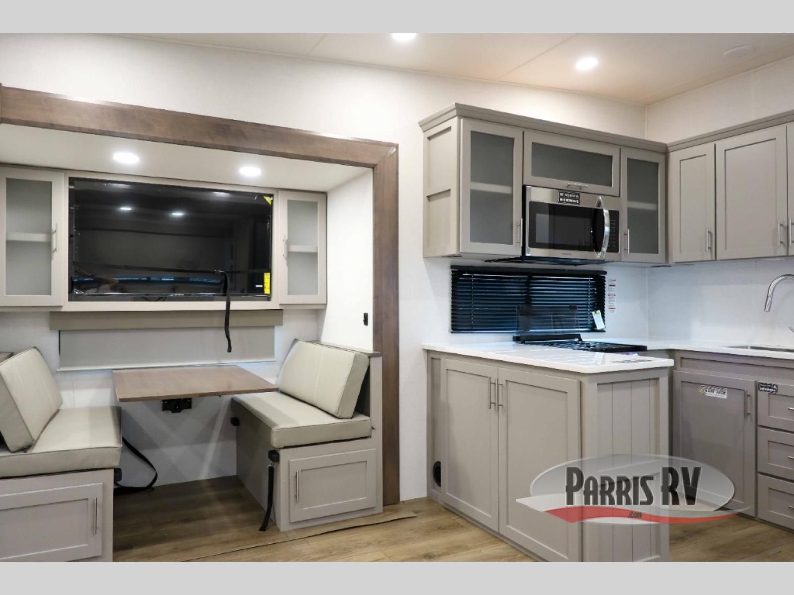 A benchmark chassis creates a space saver upper deck with each one of these Avenue All-Access fifth wheels by Alliance RV! The 101 in. wide-body construction gives you more room to walk around and the flush slide out floors throughout prevent any tripping. There are Azdel composite sidewalls inside and out, and a seamless fully walkable PVC roof for extreme durability and zero maintenance. You are sure to love no carpet throughout making each Avenue All-Access easy to clean and allergen free, not to mention pet friendly. You can maximize your space throughout with innovative storage solutions like the hidden storage behind the TV, inside the end tables, ottoman, and dinette chairs. These units also include the OTG Solar Package with a 200 watt solar panel, 15 amp MPPT charger, multiple outlets, and more to keep you powered up!