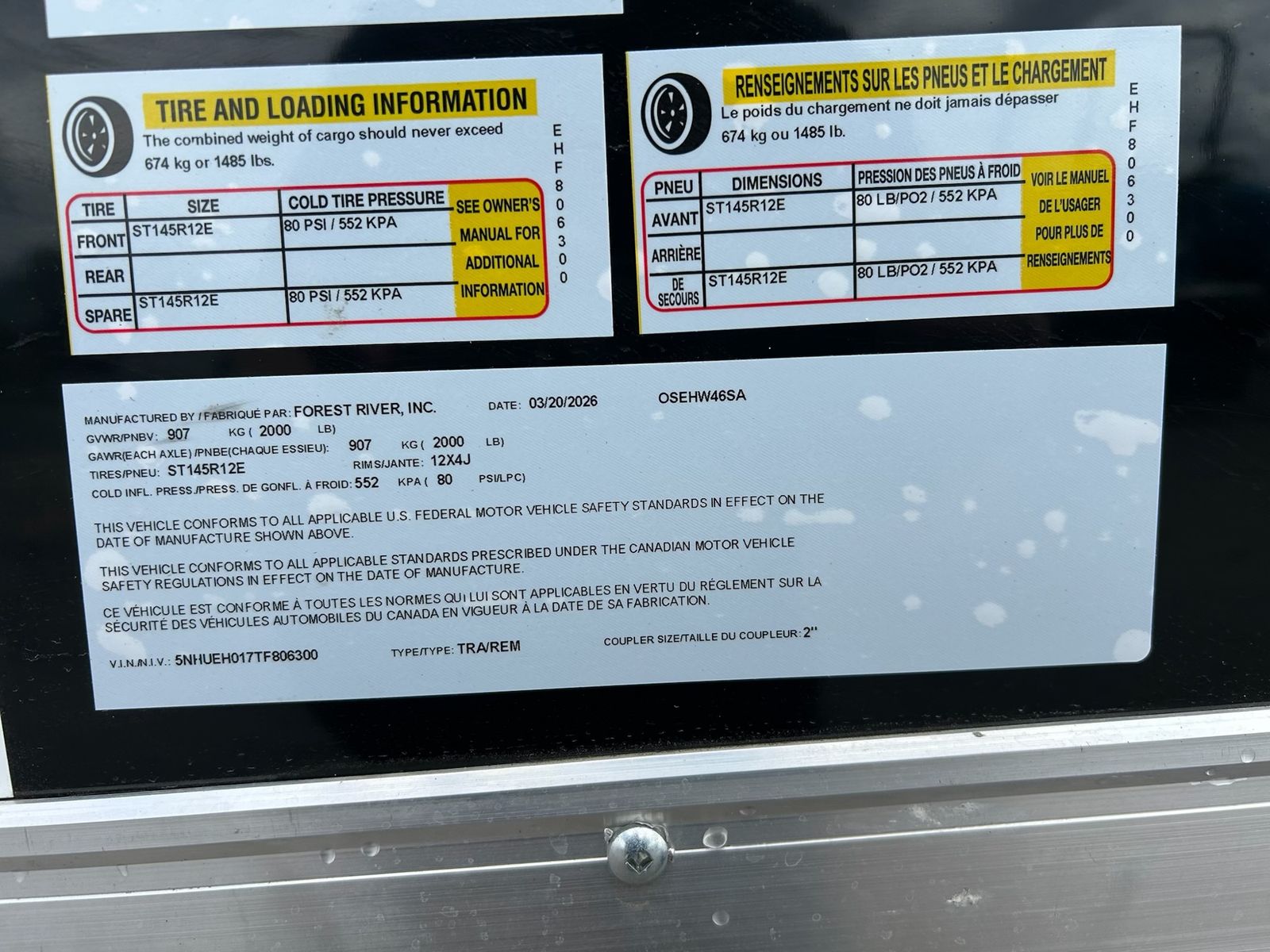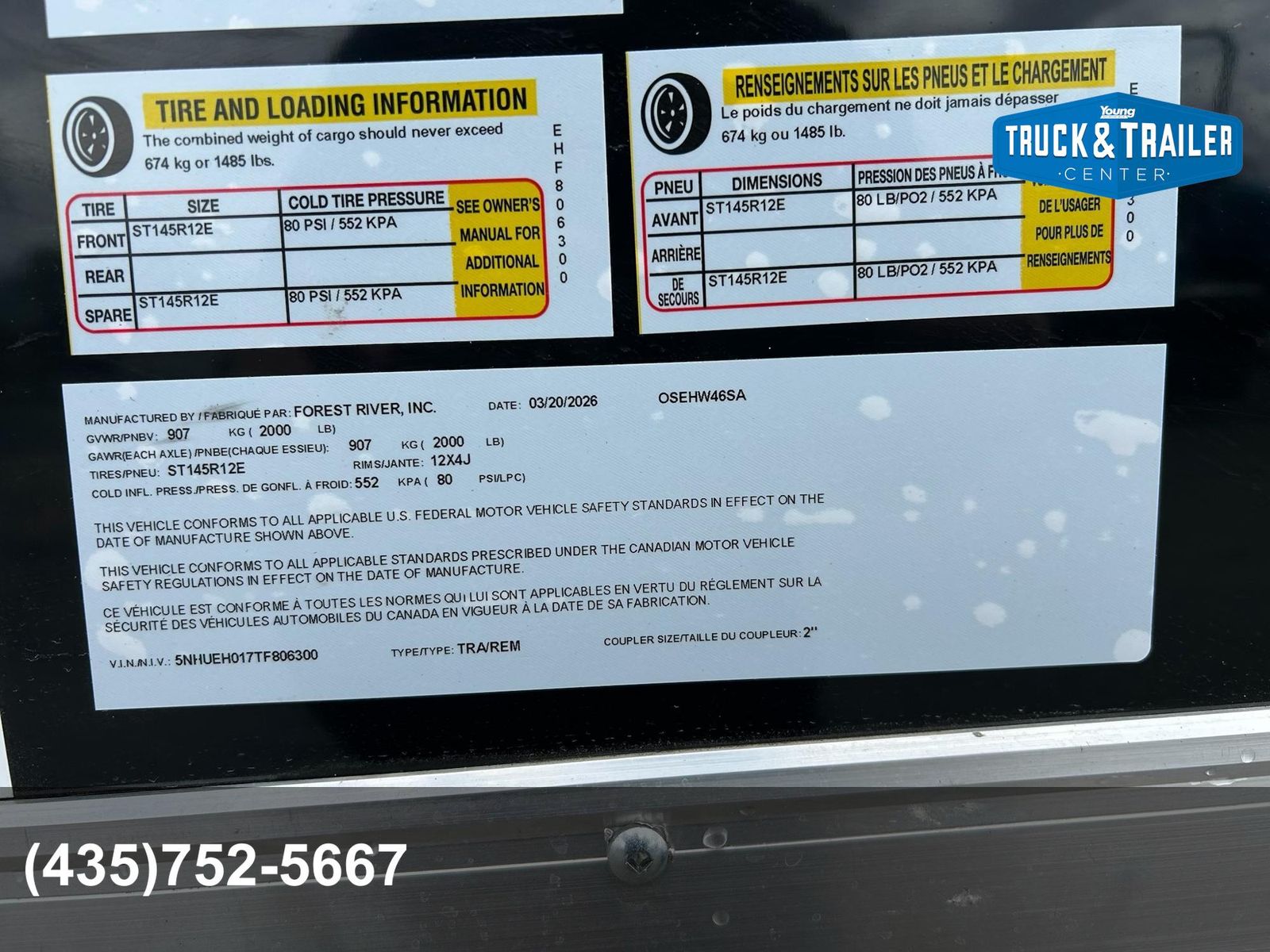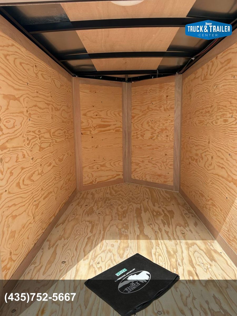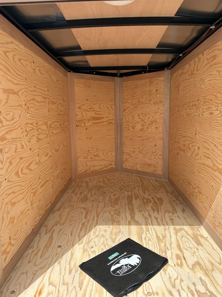 • 18” Wedge-Front Nose • C/S Door (24” on 5 wide, 32” on 6 & 7 wide, 36” on 8 wide) • Semi-Style Camlock Door Latch • Door Hold-Back on Rear Door • Leaf-Spring Axle • E-Z Lube Hubs • Silver Powder Coated Wheels • Radial Tires • Aluminum Top Rails • 16” ATP Stoneguard • (1) 12V LED Dome Light • (2) Flow Thru Sidewall Vents (on 5,6,7, & 8 wides) • Aluminum Exterior Fenders • Clear Lens LED Clearance Lights • Clear Lens LED Strip Tail Lights • DOT Lighting • License Plate Holder with Light • .030 Aluminum Exterior • Anodized Aluminum Wrap • Exposed Steel Painted Epoxy Black • Undercoated Frame • Tongue Jack with Sand Pad • Welded Safety Chains • Full-Color Decals • Flat Front w/ Anodized Corners IPO of 18” Wedge Available