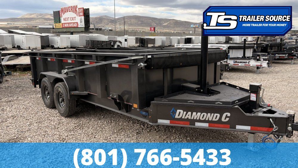 "More Trailer For Your Money" 7 x 16 Diamond C LPT 207 15.5K Dump Trailer – Ready To Work! 14 Ply Tires, Long Arm Tarp
