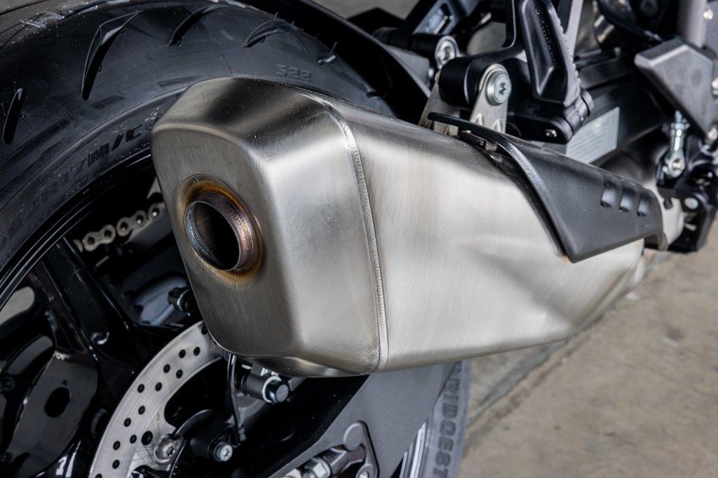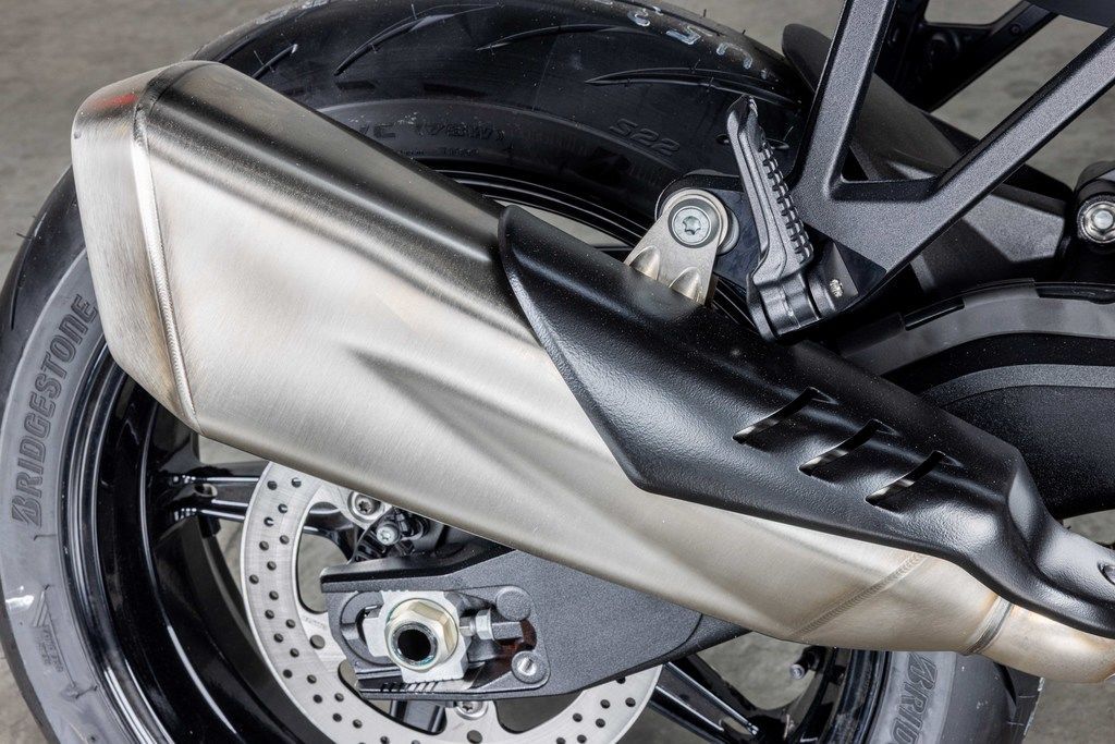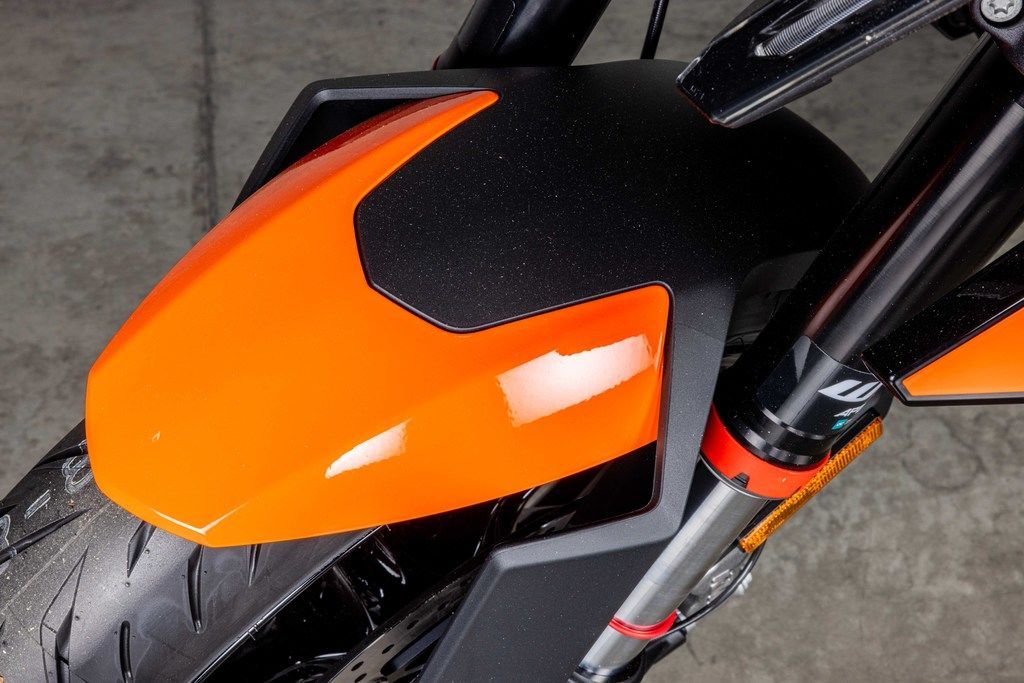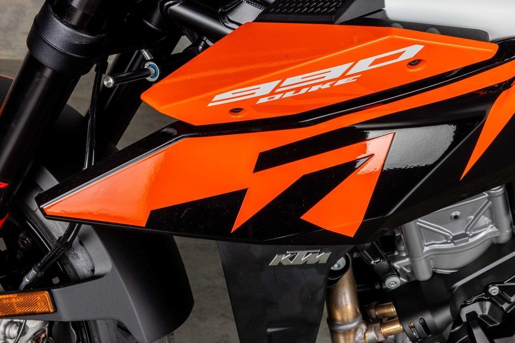 The KTM 990 DUKE has been developed with a completely new tubular frame, with torsional stiffness and rider feel as a top priority, thanks to the use of forged parts over sheet metal and an integrated swingarm pivot point, adding additional stiffness. An aluminum diecast subframe integrates the airbox and air intakes under the seat, reducing weight.