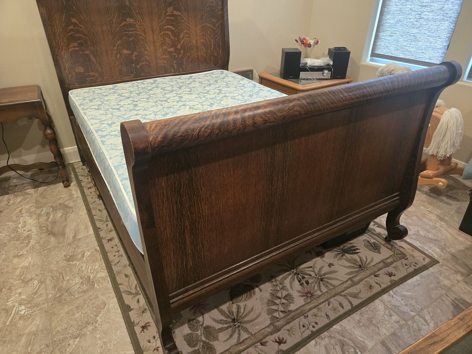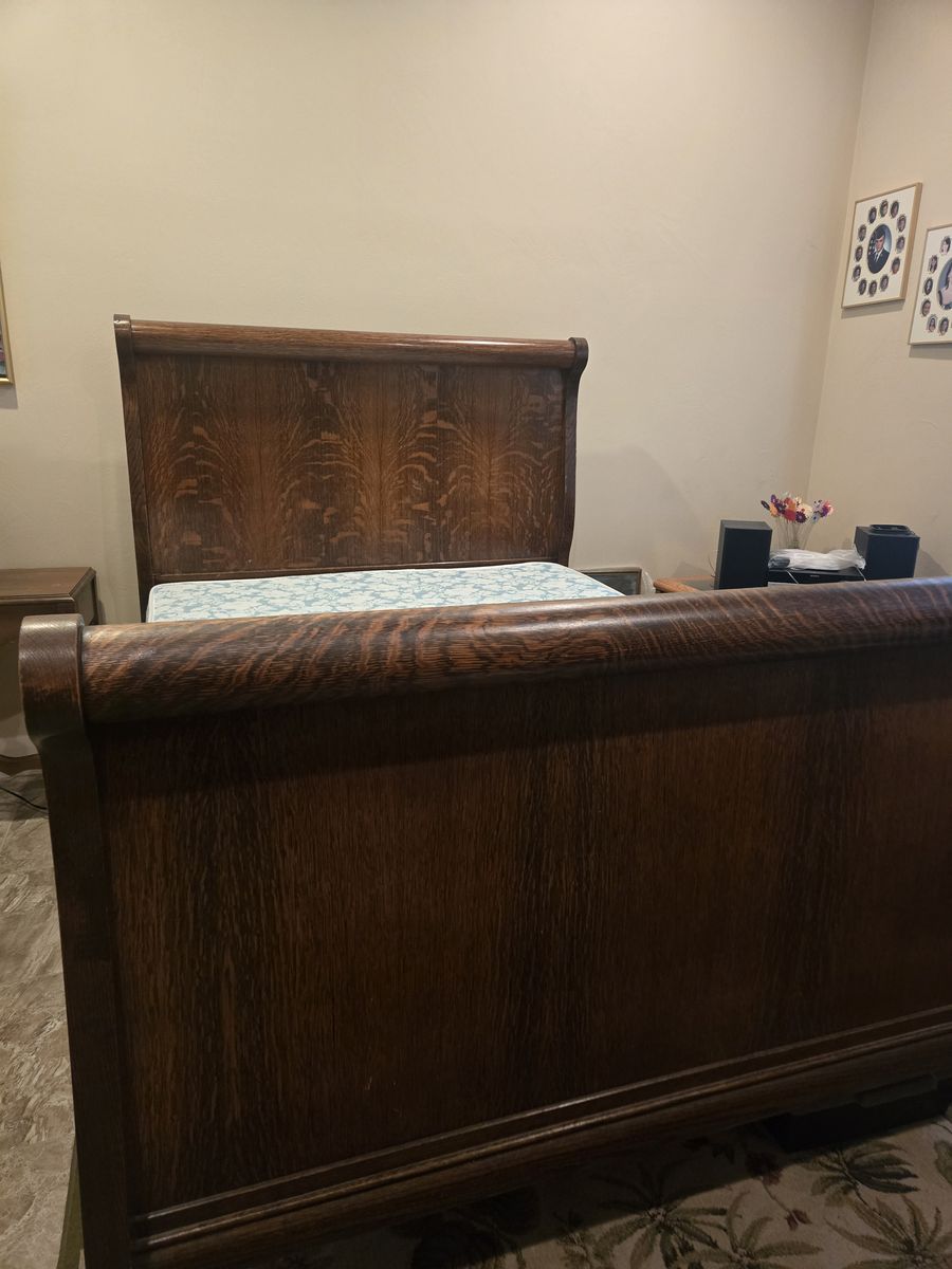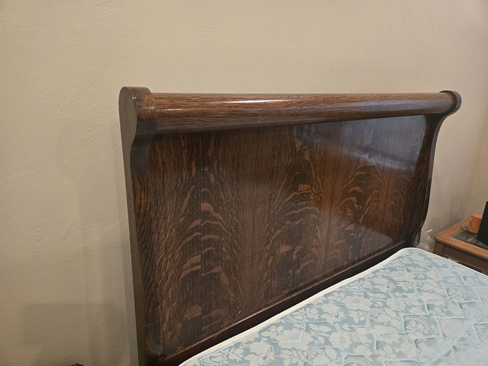 Antique early 1900's sleigh bed with a matching 4 drawer dresser with attached mirror; solid wood - sturdy furniture