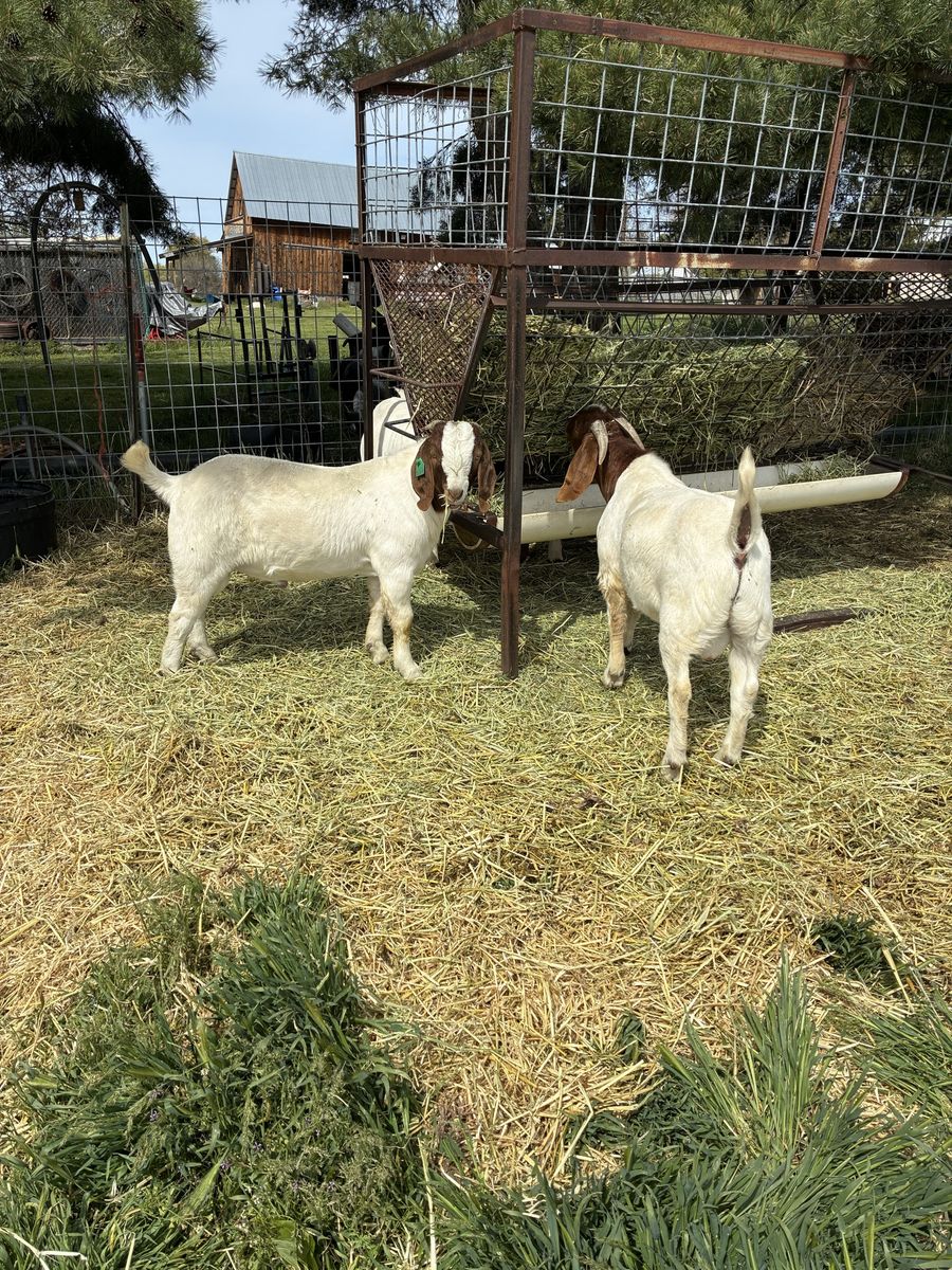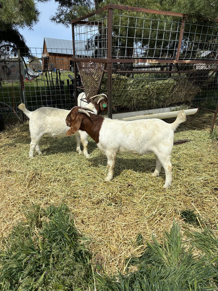 VenmoTwo Purebred Boer Bucklings looking for new home. October 2025 born. ABGA registered grand-dam and father, selling as high quality commercial. Featured in working clothes naturally raised in foothills and on pasture. Years of genetics chosen to produce big meat carcasses on foraged mountain grasses and summer pastures not in containment pens with grains. Priced to move at $500 each. Come from a clean tested herd.