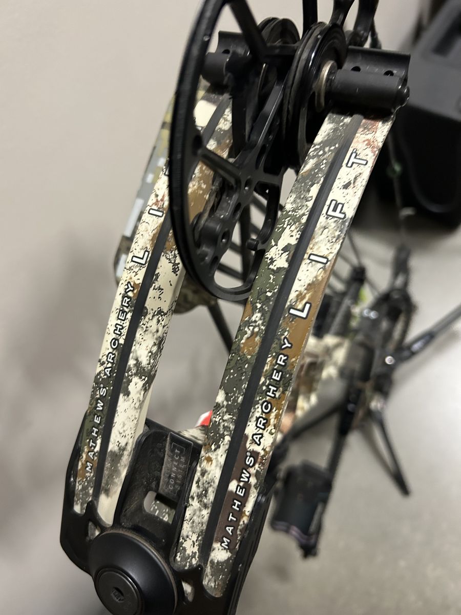 I have a basically new Mathews lift 33 bought new last year has only been shot maybe 200 times right hand 60/70lb currently set at 29" draw can be purchased bare $1000 or loaded $1700 if purchased loaded comes with sight rest quiver stabilizelers stand bee real grip & case