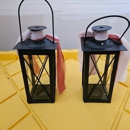 -20 black table centerpiece lanterns (ribbon is just hand tied on so that can be removed)