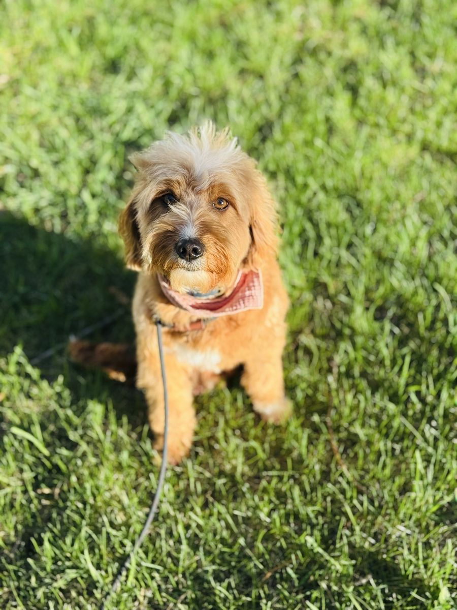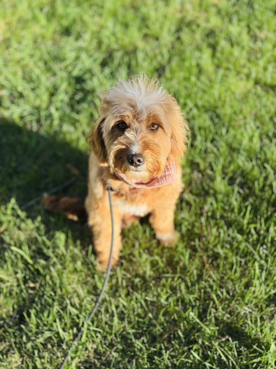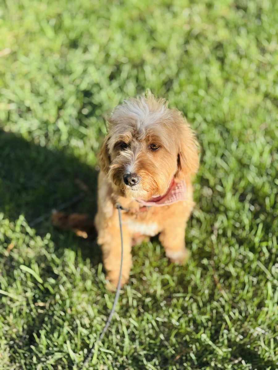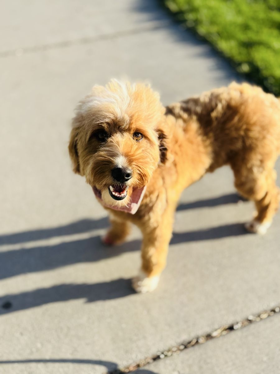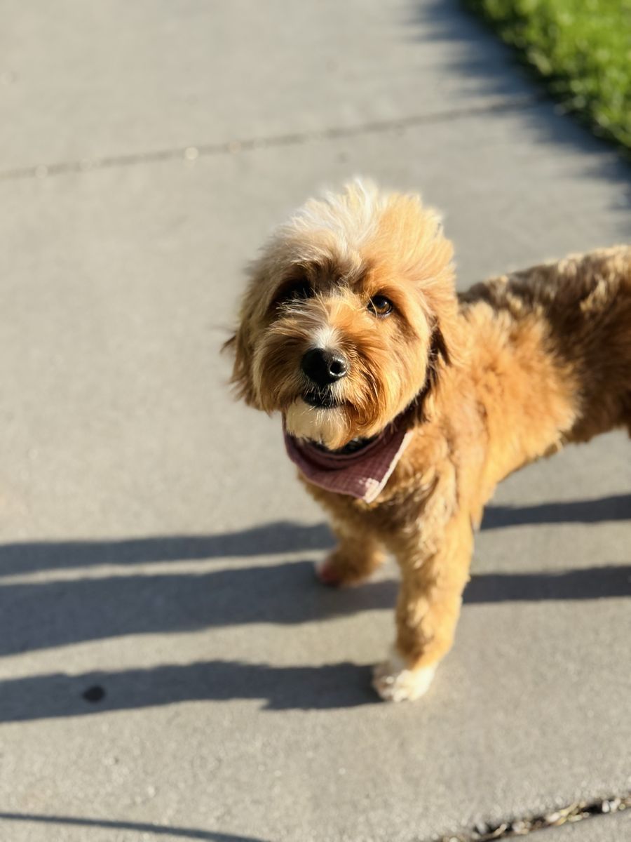About her: • 4 years old (F1 Goldendoodle) • Calm, affectionate, and deeply loyal • Forms strong bonds with her person • Walks well on a leash – a wonderful walking buddy • Crate trained • Uses a dog door • Knows basic commands: sit, come, wait, leave it • Thrives in a relaxed home with consistency and connection