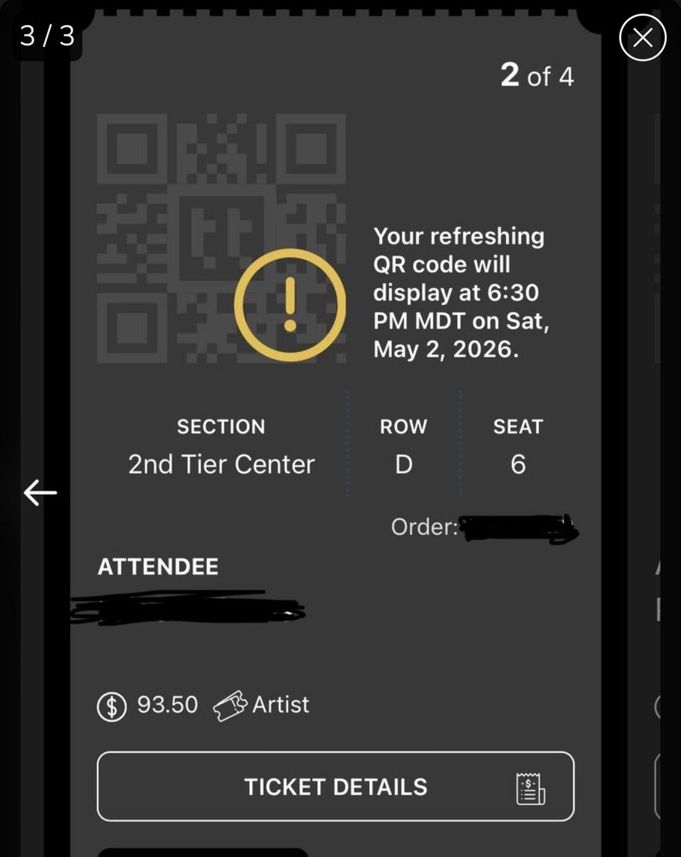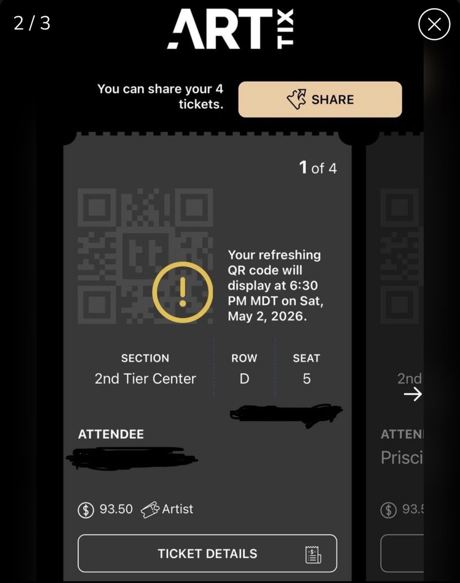 Venmoay 2, 2026 DWTS live for the 8:30 show :) $200 each or best offer and I have to sell them together! Venmo or meet up for cash! I will transfer the tickets to you. Seats: 2nd tier center, row D, seats 7 and 8