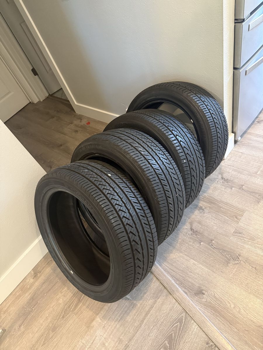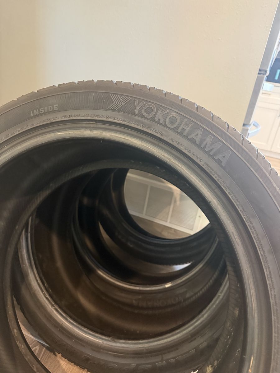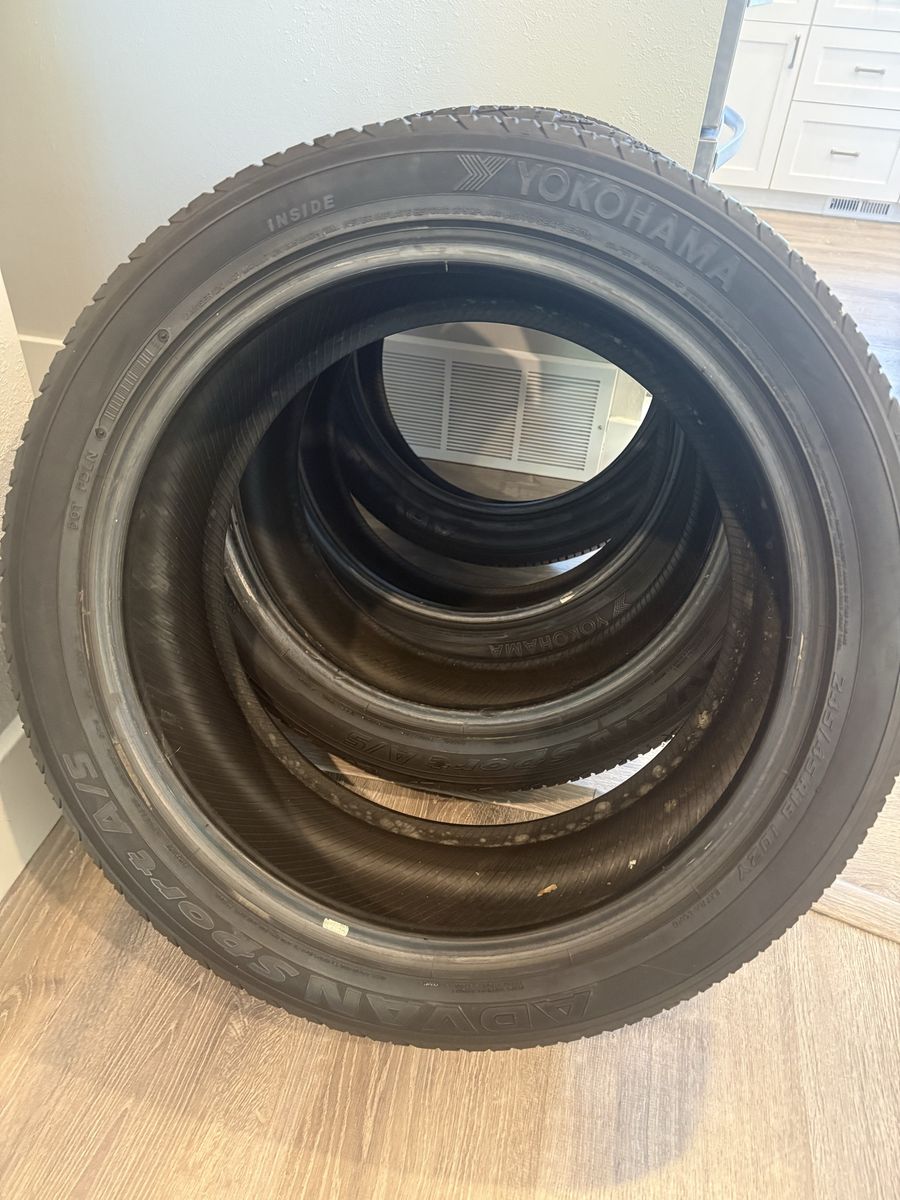 Venmo4 used Yokohama advan sport a/s with about 6/32 tread left very good condition. Zero patches. Came off of 2015 bmw x5 good for any vehicle that fits this tire. All 4 good condition and good tread. Fits Audi a6, Audi a4, bmw 3, Mercedes e class, Mercedes c class, Lexus isf-gs, Tesla model s, Cadillac cts, Cadillac ats, Kia stinger, Porsche panamera, Volvo s90. Please text or call