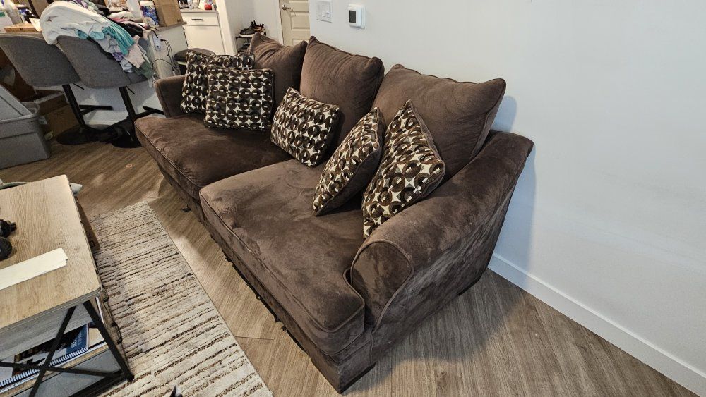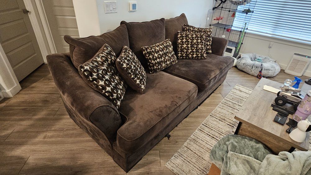 VenmoWe are selling our couch because we are moving and can't take it with us. The pillows are included. Asking $25 Must be gone by today or tomorrow!