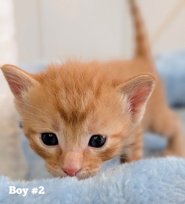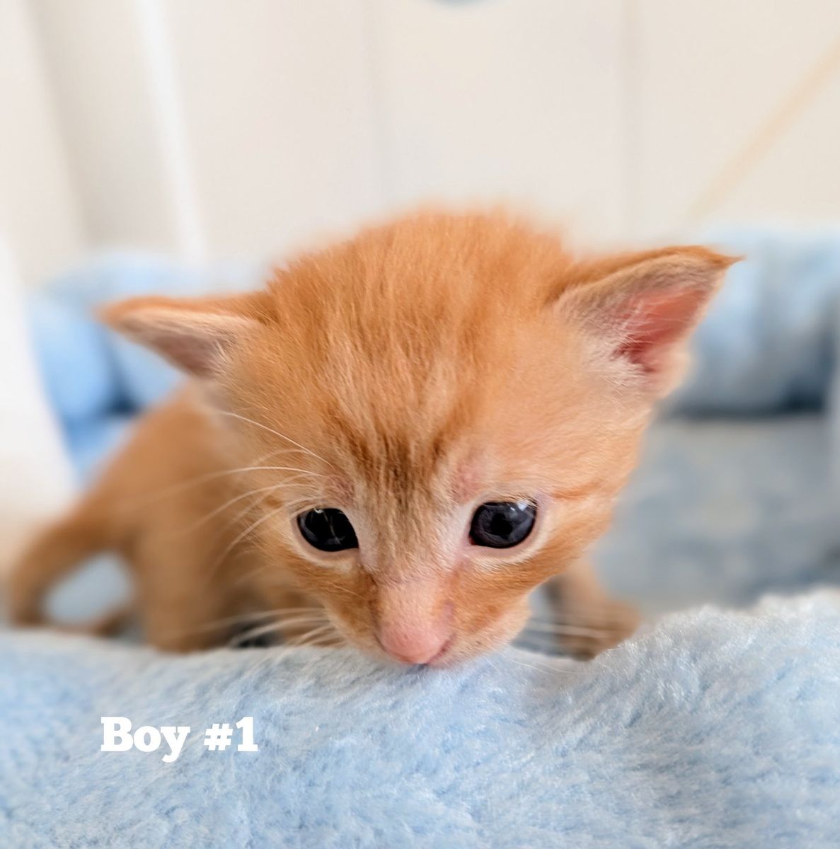My son is raising these adorable kittens. We only have two orange tabby boys left! We want to find them amazing families to join!