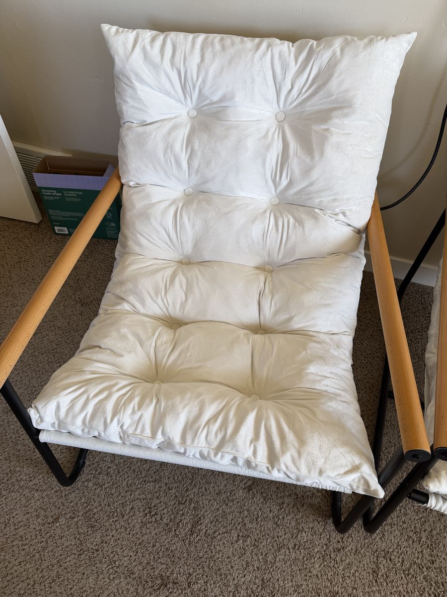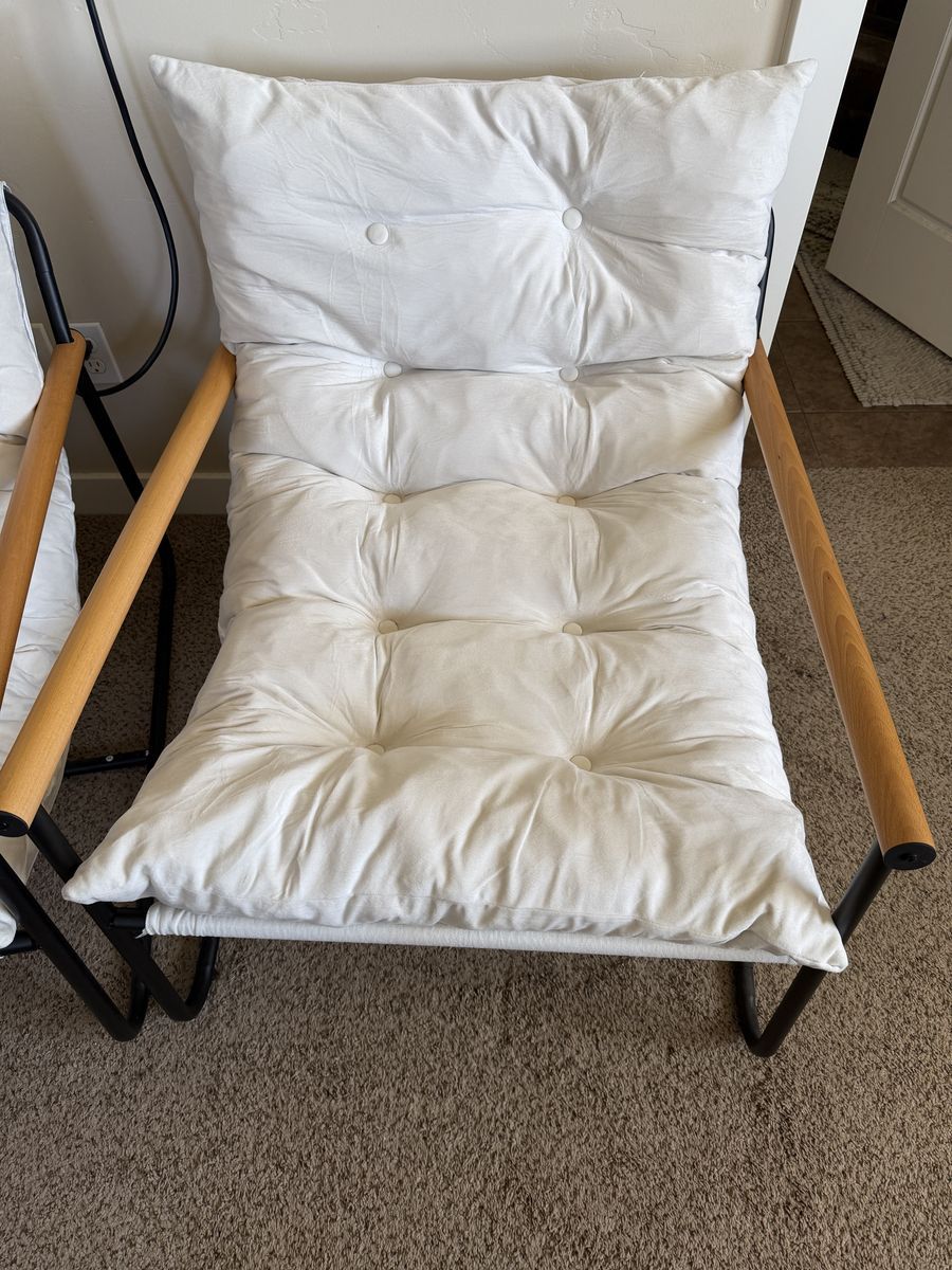VenmoModern Accent Chair, Comfy Chairs with Metal Frame Wooden Armrest, Upholstered Armchair with Soft Cushion. These are well taken care of they were given to me but don't really match any of my decor. They are extremely comfortable, just don't have anywhere to put them.