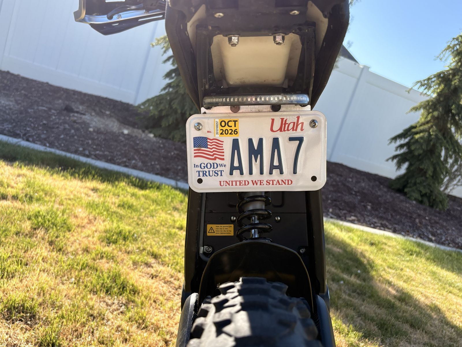 Venmo2023 Talaria Sting R MX4 in excellent condition with only 456 miles and just 13 cycles on the battery. I added waterproof connectors for DOT headlight with high/low/off beams, turn signals, brake lights, etc. all controlled with a motorcycle-style switch in the usual left-handed position. It has low-profile mirrors installed. It’s had a VIN inspection from the local PD and all the paperwork completed through DMV to get it titled. It’s been insured and registered since 2023, but obviously hasn’t been ridden much. Get a great deal on a bike that’s got all the difficult, time-consuming work done to make it street legal and has low, low miles and comes with an essentially brand-new battery!
