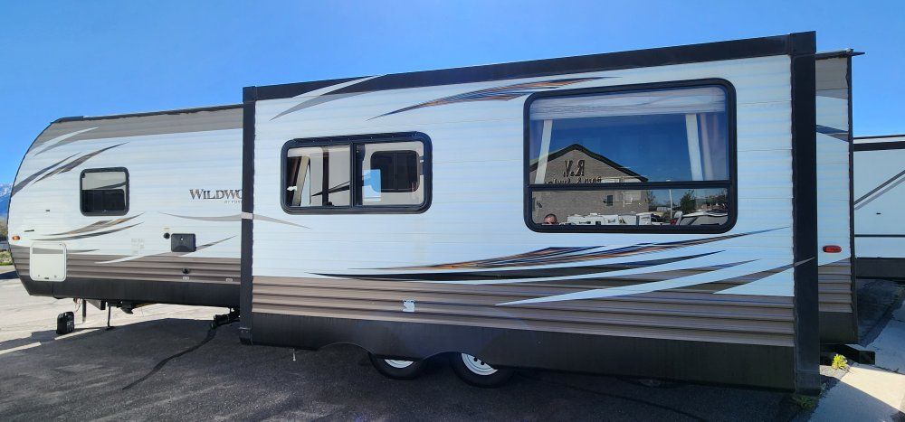Beautiful rear kitchen mid living with large slide and in great condition. Would make an awesome property parked trailer, or liveable trailer. Text or call me at 801-882-3645...specs are below.