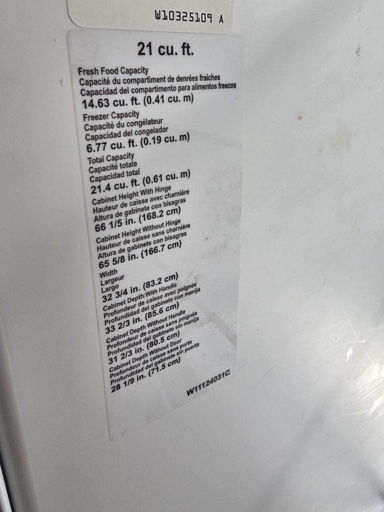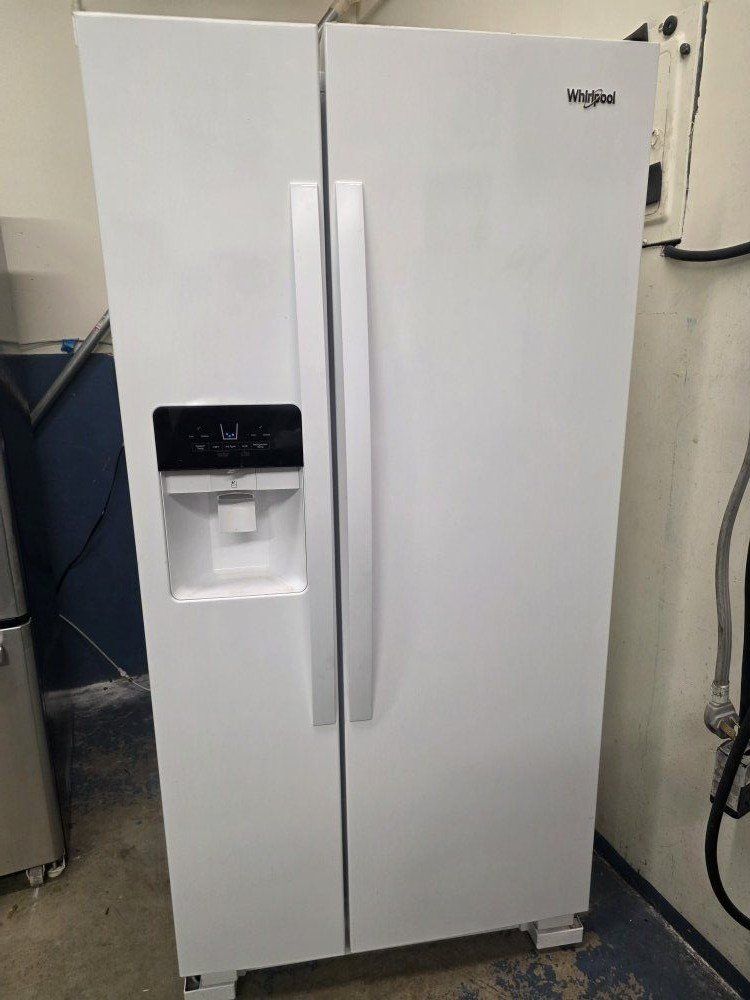 Whirpool refrigerator, in great working condition and clean, water works icemaker doesn't work, measurements are in the pictures.
