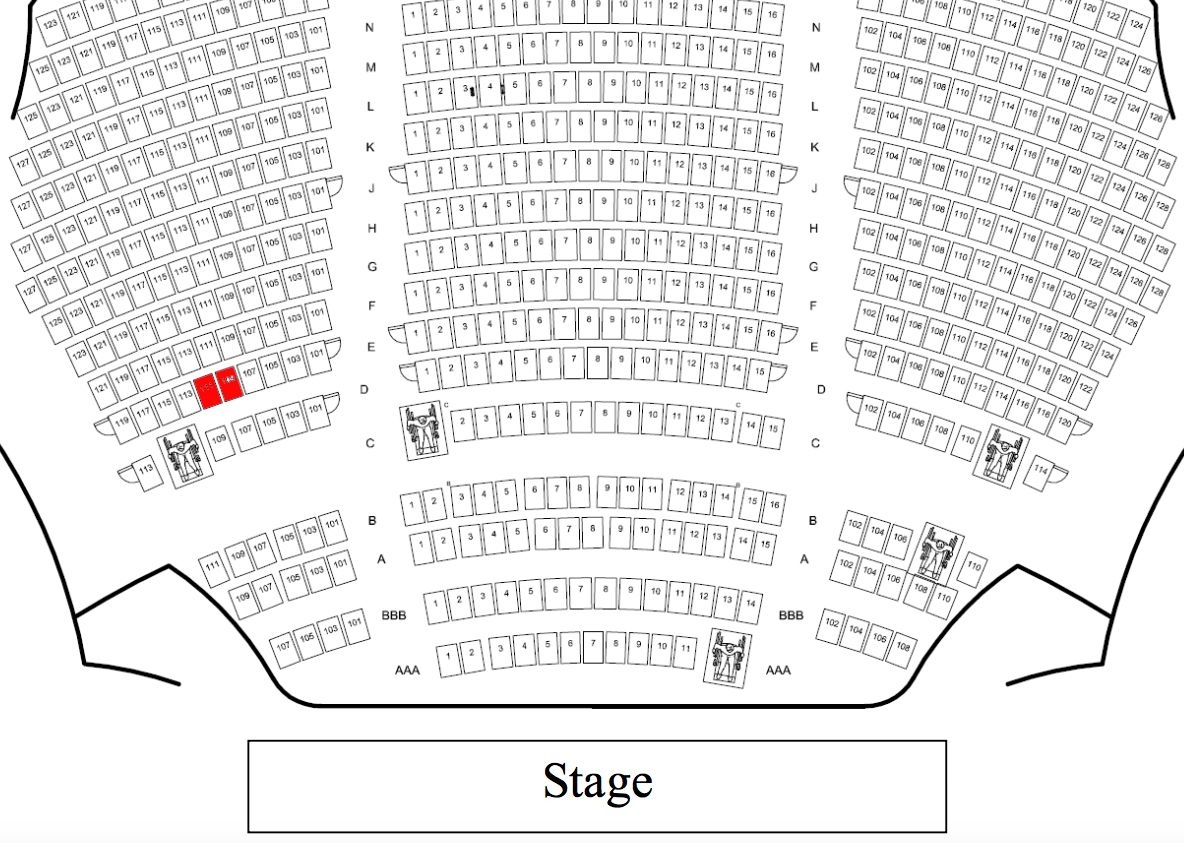 Orchestra Right - Row E - Seats 109-111. See the attached map.