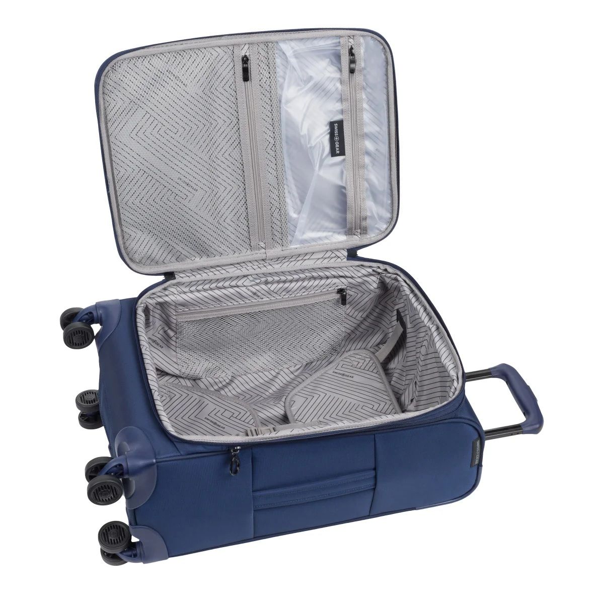 Choose the Swissgear 8099 Expandable Spinner Carry On Luggage as your ultimate travel companion for short escapes or business trips. Crafted to offer ample space for your belongings. With a deep, expandable interior, equipped elastic clothes compression straps, and a large mesh flat pocket, and dual exterior zippered pockets: a small 'ticket pocket' for your passport and essentials, plus a deep, gusseted pocket for larger items, like a sweater, catalogs and a magazine, you are sure to have room for it all! And, with its Eight 360-degree, multi-directional spinner wheels and its retractable, push-button handle and padded top and side handle, plus a handy bottom handle, handling and storing your luggage will be a breeze!