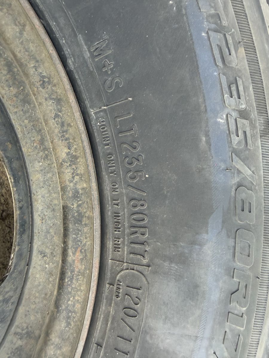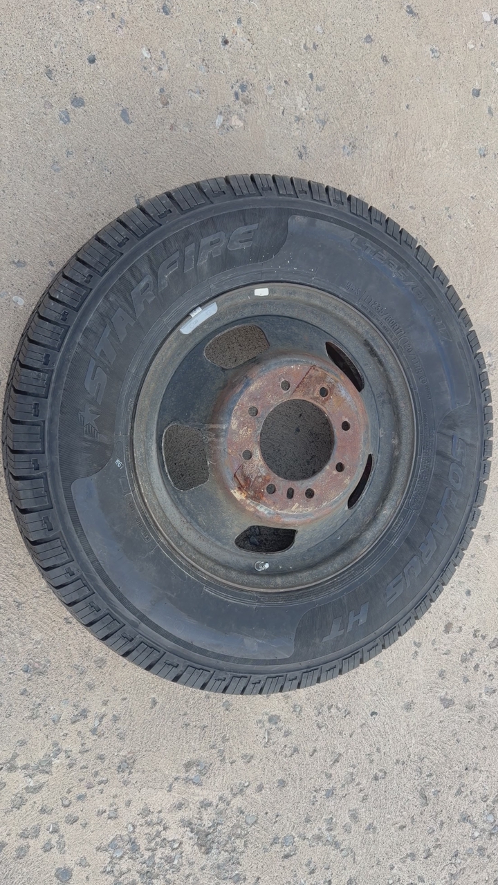 VenmoThis is a spare tire I had for one of our Chevy 3500 dually. The tire is brand new never used and purchased June of last year. The size of the tire is LT235/80r17. The rim is a 17” rim with an offer for duallies and 8x6.5 bolt pattern. It’s a bit rough and has been used…still in usable condition, and definitely usable as a spare tire.