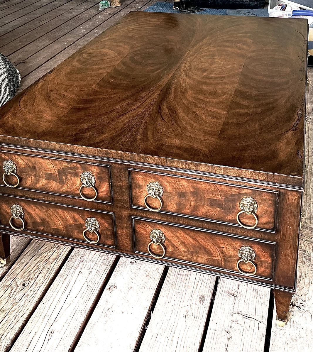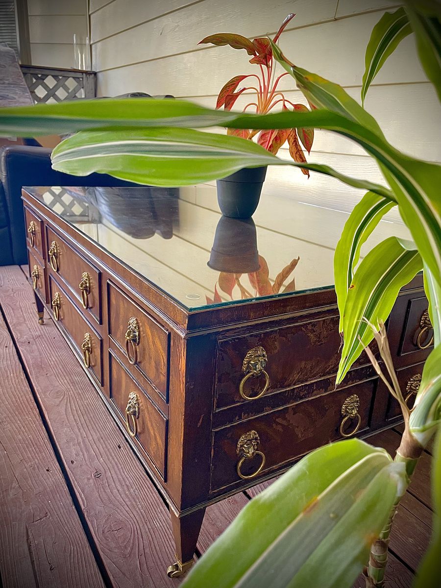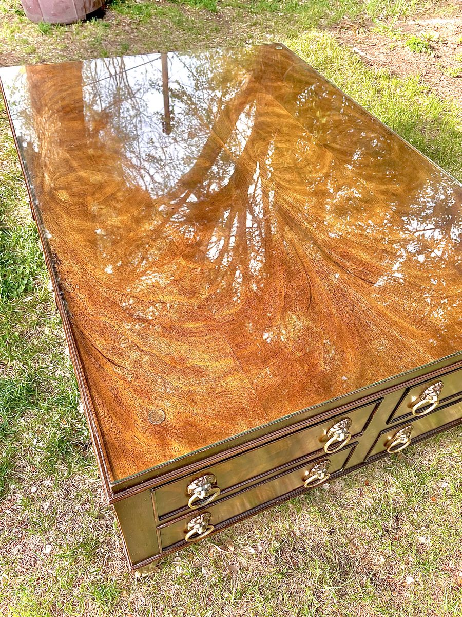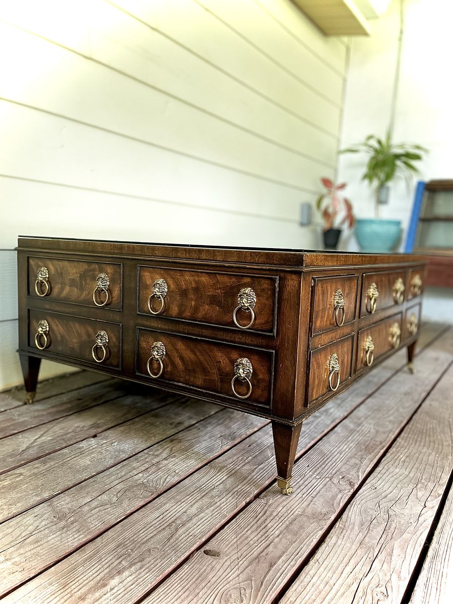 ApplePayEJ Victor Burlwood and Walnut Regency Coffee Table – Brass Lion Head Hardware