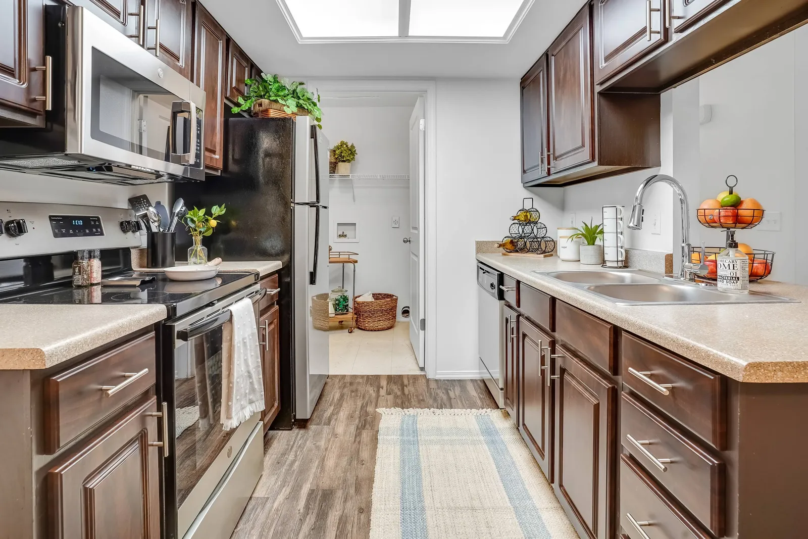 Inside, you’ll find modern upgrades throughout, including rich dark cabinetry, updated fixtures, and sleek plank flooring in the main living areas. Lighter wall tones brighten the space, creating an open and inviting atmosphere you’ll love coming home to.