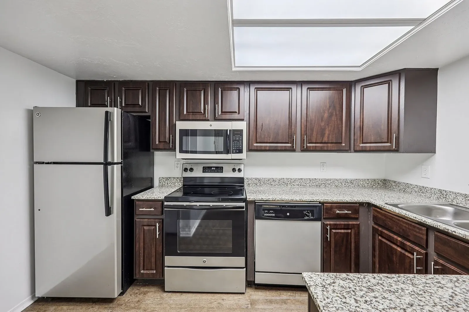 Step inside and enjoy upgraded finishes throughout, including rich dark cabinetry, updated fixtures, and sleek plank flooring in the main living areas. The lighter wall tones brighten the space, creating an open, airy feel that makes every room feel inviting.