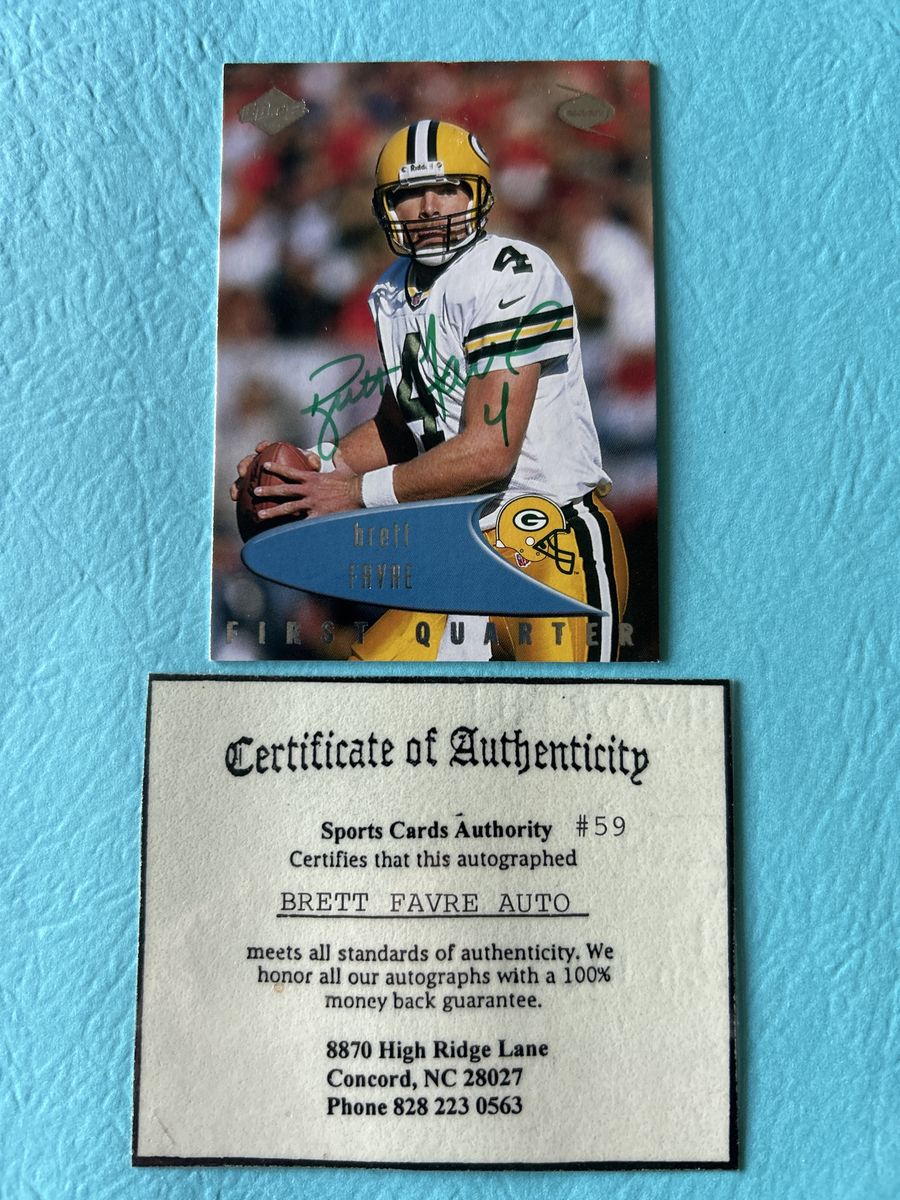 ApplePayBrett Favre Green Bay Packers Certified Hand Signed Football Card w/COA.