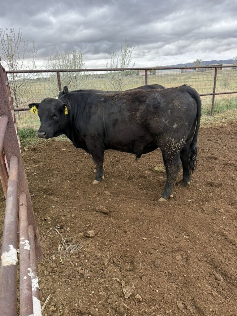 2 yr old Angus Bull. Bull is currently 20 months old and a Virgin. He is tested for trich and fertility tested. Been grown on long stem hay without any grain. Could be used on the right heifers, but more of a growth bull. $5,500.00. Text is best.