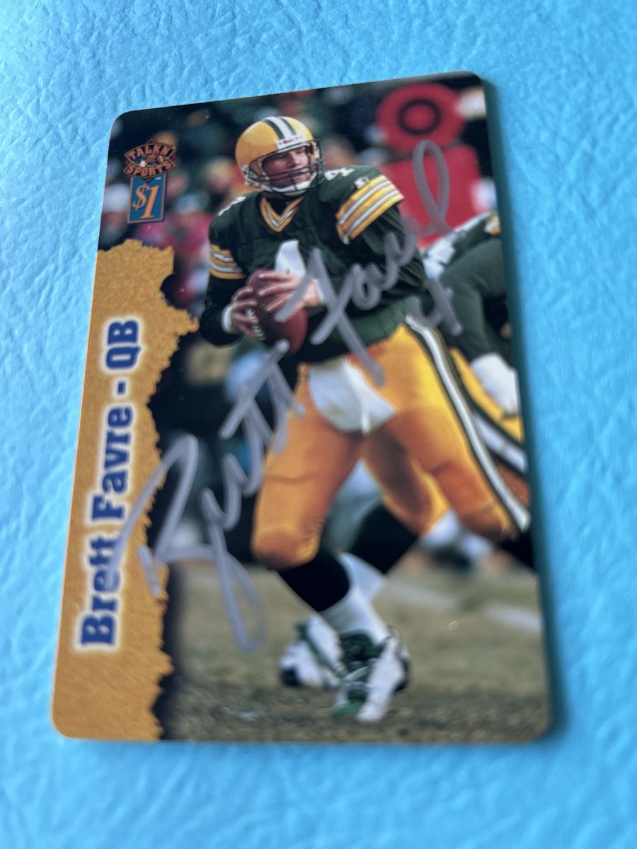 ApplePayBrett Favre Green Bay Packers Certified Hand Signed Football Card w/COA.