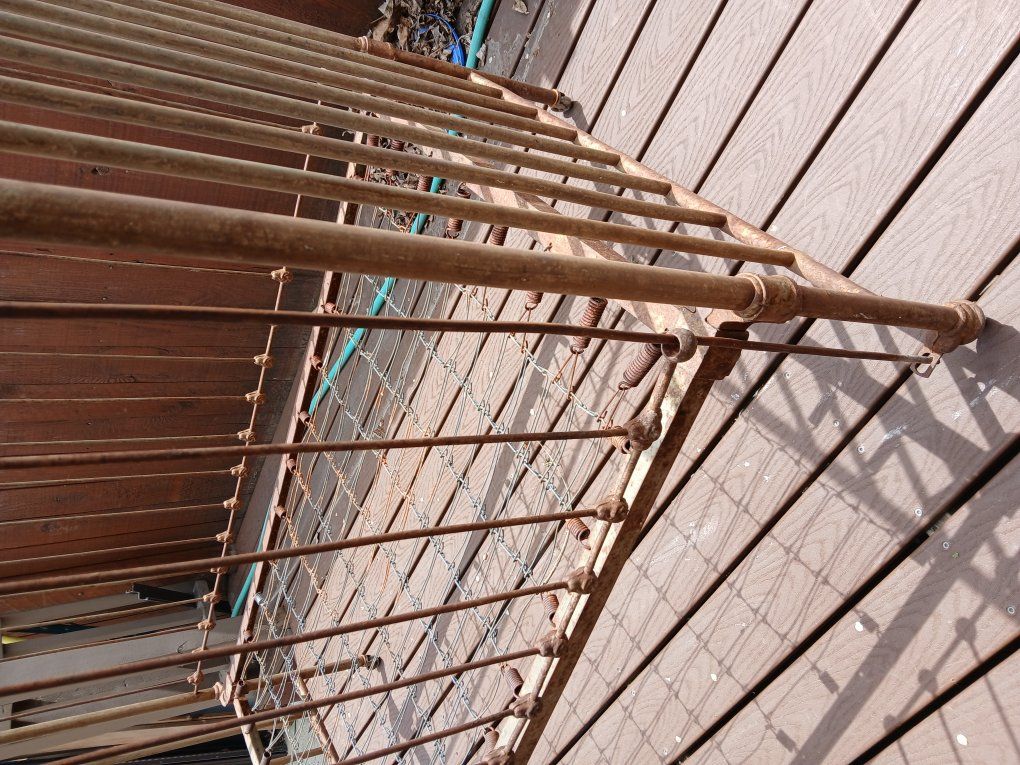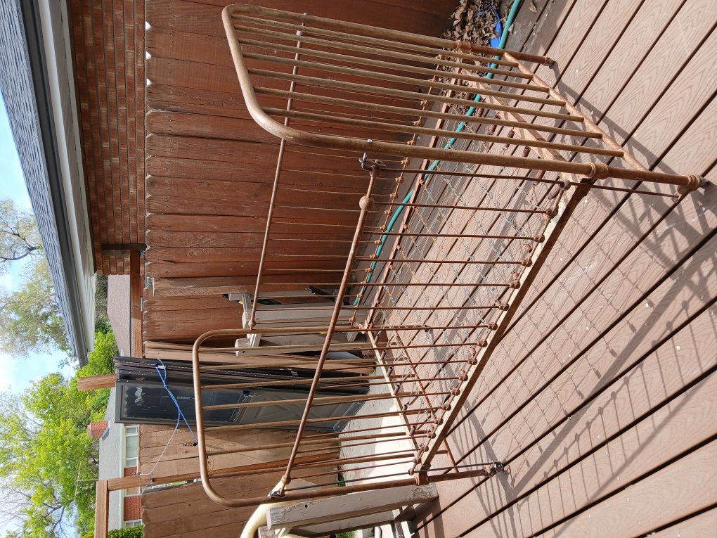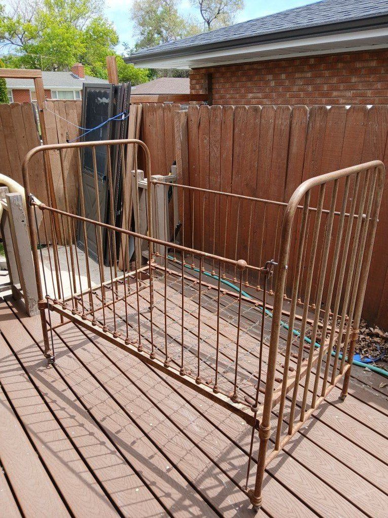 antique metal baby bed that has not been restored but still has some original color and ready for you to do what you would like.
