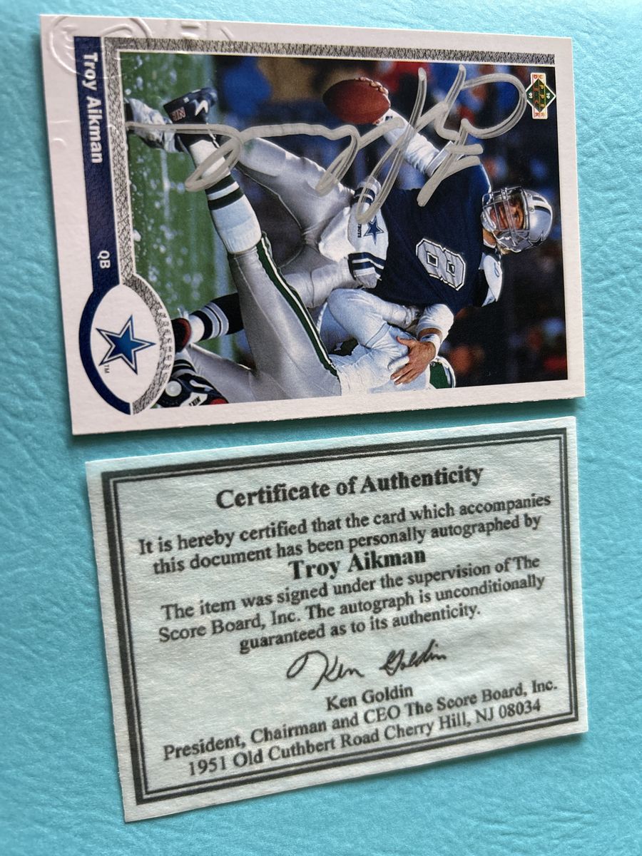 ApplePayTroy Aikman Dallas Cowboys Hand Signed Football Card Autograph NFL Super Bowl Champions