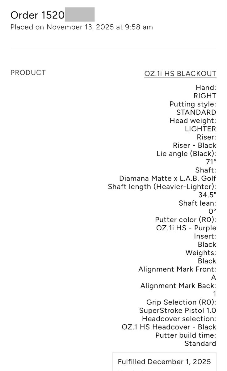 Diamana Matte Putter shaft Superstroke Pistol 1.0 0° lean 34.5” See last photo for full specs.
