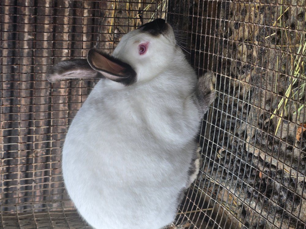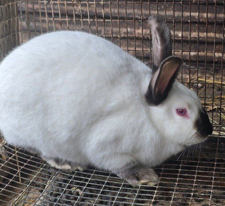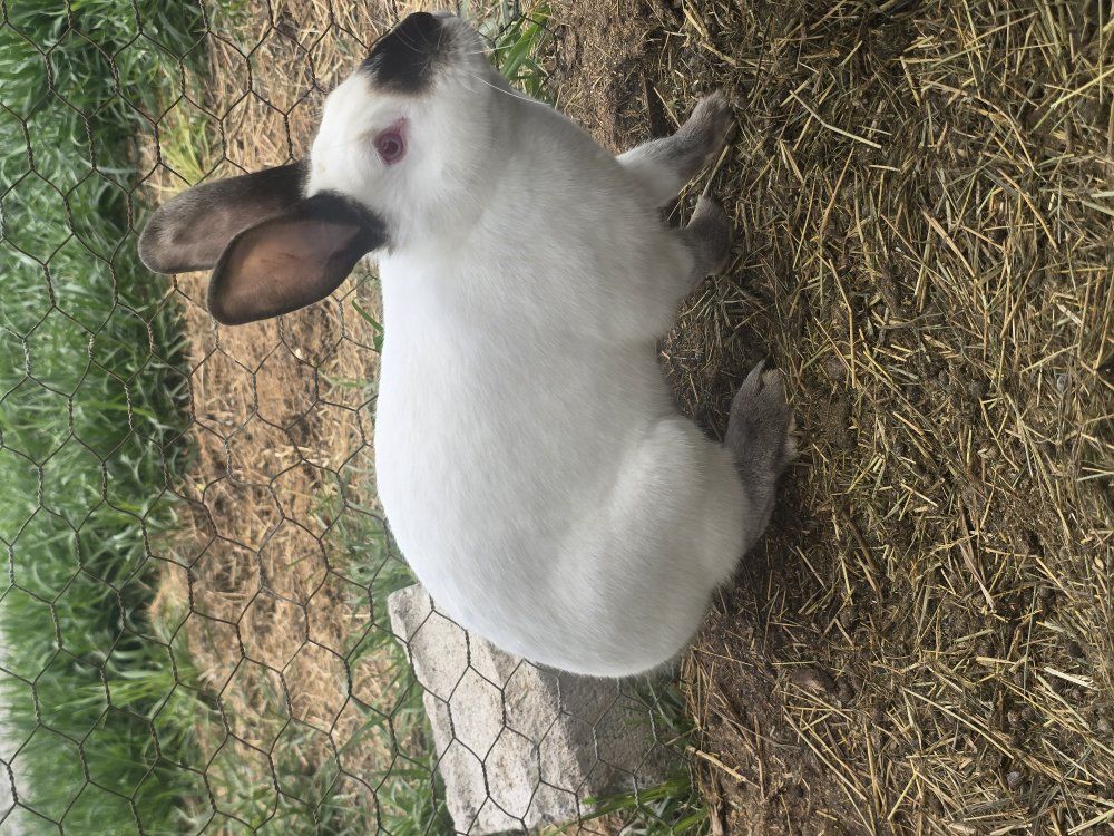 we will have a litter due may 10th of Californian rabbits ready will be ready fathers day weekend june 21 2026 mom isn't papered dad is pedigreed 7-10 lbs this breed makes good meat or breeders as well crossing them with a nz or rex etc. mom is more shy dad comes up let pet but doesn't like being held to much.
