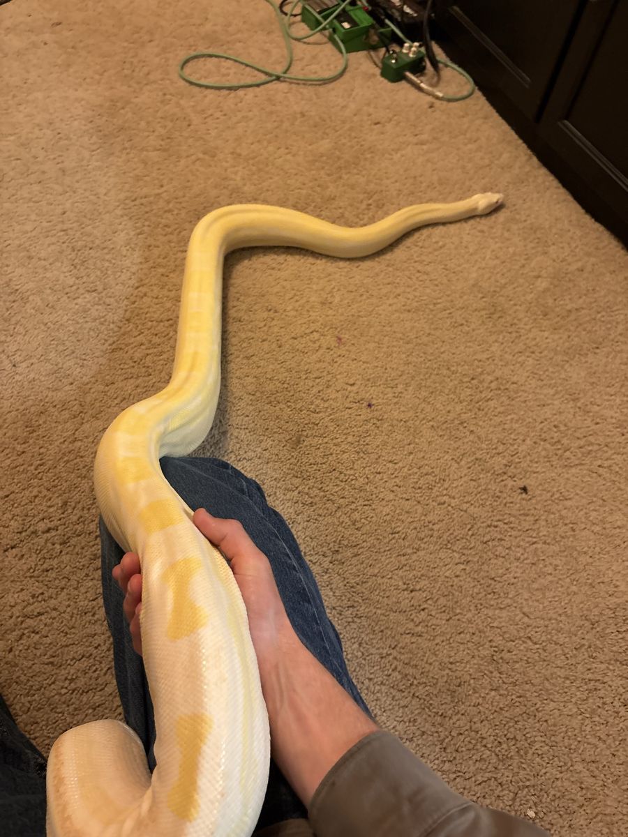 ApplePayHere is my beloved albino motley male. I’ve had him since he was only a few months old, and parting with him will be quite sad. I’m a broke college student and it’s time that I make some financial decisions to try and get my future on track. I’d prefer that he goes to someone with experience caring for snakes. Last time I measured him he was right around 5.5 feet.