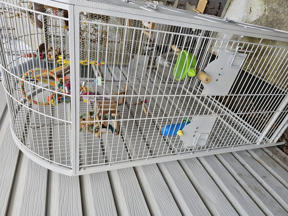 VenmoI have recently upgraded some bird cages and am looking to the older ones on for someone else to use. i have two large cages, one that is appropriate for a parrot and another that is better for smaller birds like canaries or finches. i also have two small cages not pictured that I will give away for free. when is a standard cage for a Budgie?Or cockatil , and the other is a fine flight cage. all cages need cleaning. the parrot cage does have the bottom tray , but it is not pictured.