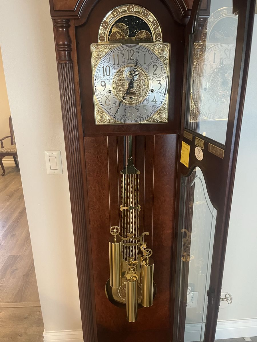 VenmoThis Howard Miller Langston Grandfather Clock, model 611-017, is in excellent condition and work perfectly. It has been regularly serviced and maintained. The most recent service was April of 2025.