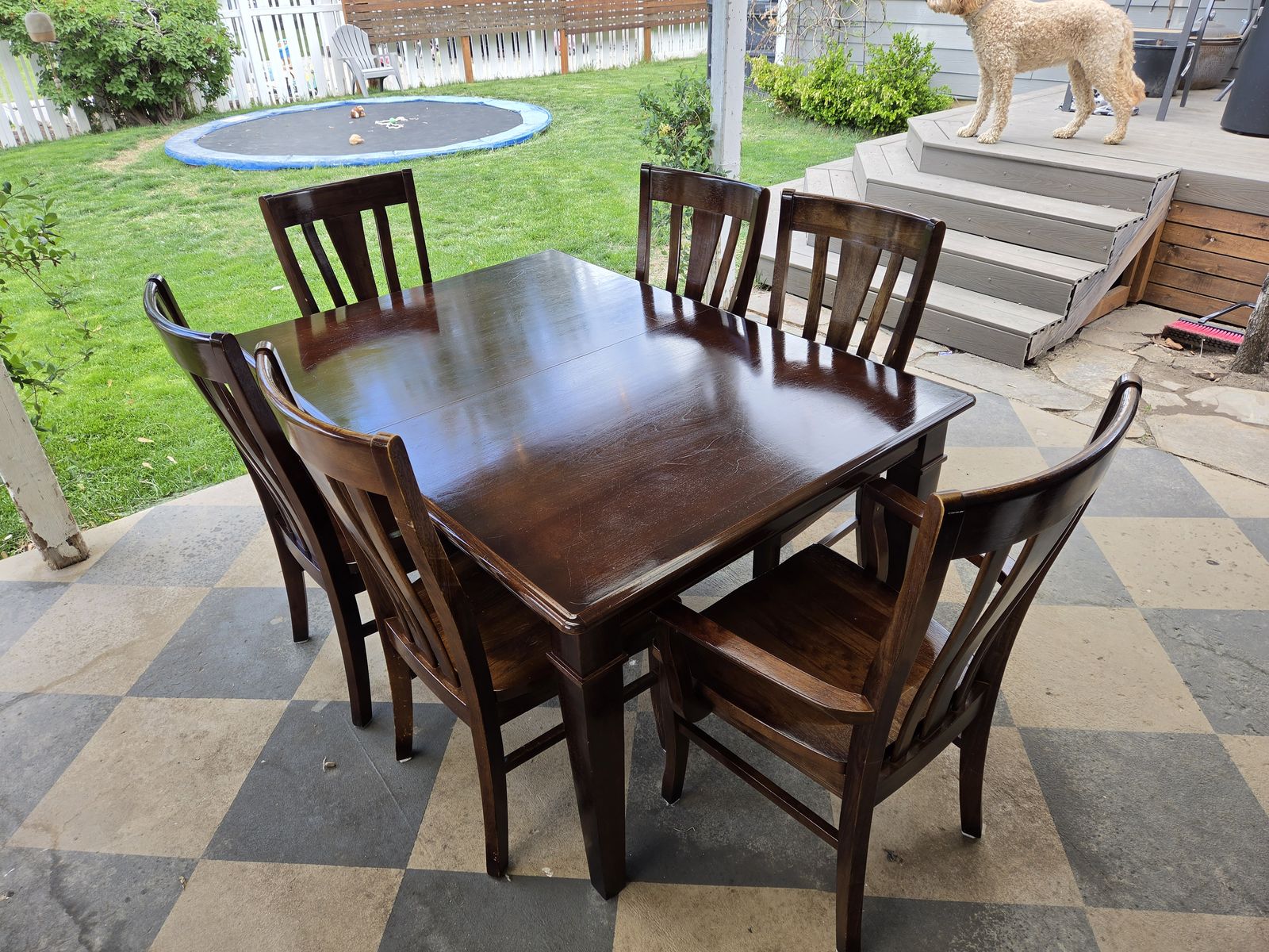 VenmoGreat dining table includes 6 solid wood chairs and a leaf for extending the table. Everything is in good condition and very sturdy. I have nowhere to store it. Asking $275 OBO.