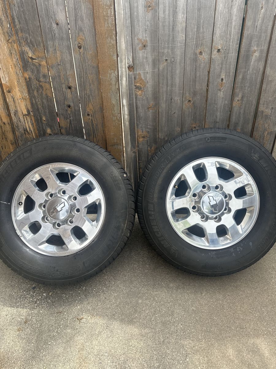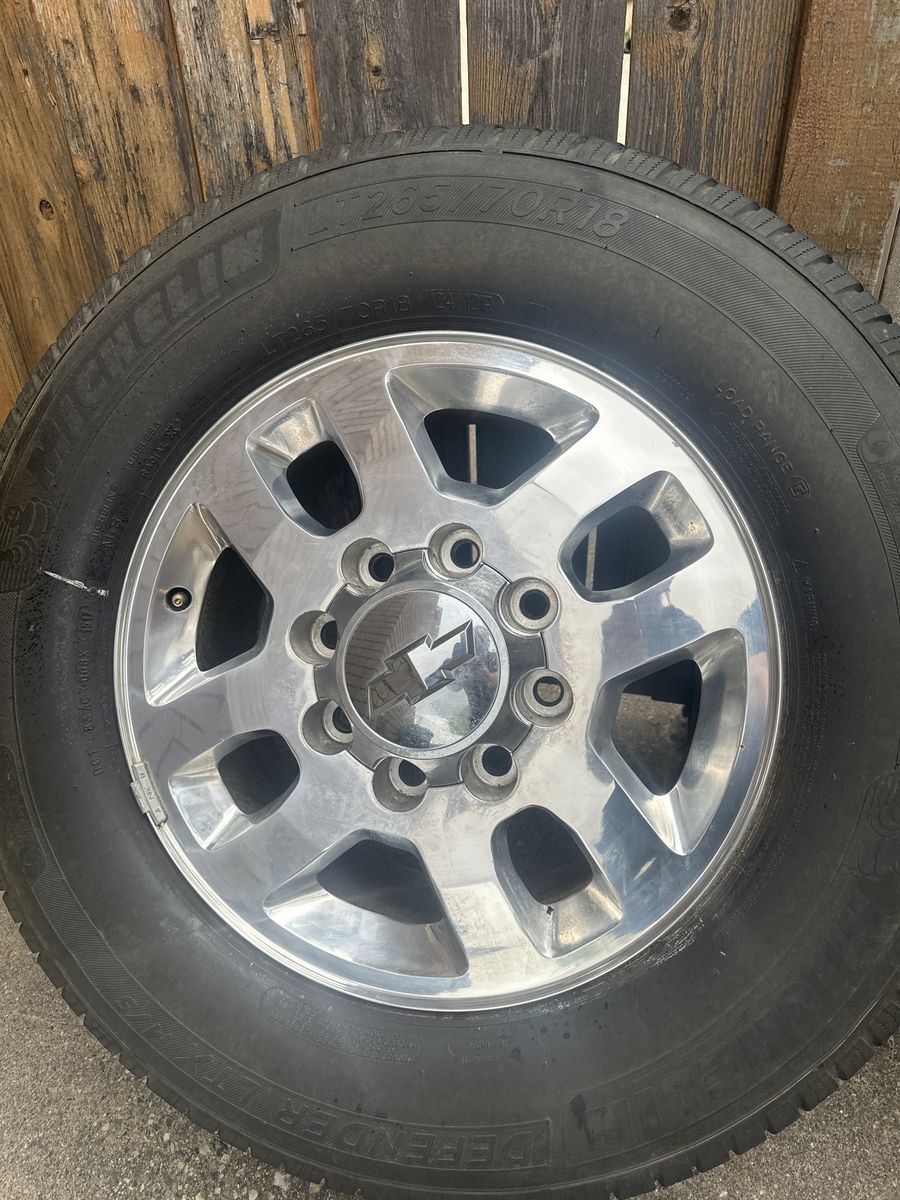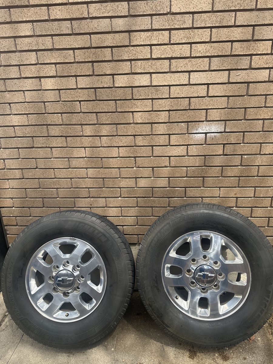 VenmoSelling a clean set of 18” LTZ wheels off a 2015 Chevy Duramax 2500 HD. These are factory wheels in great condition with no curb rash. Lug nuts included. $800 OBO. Tires will need to be replaced soon but have some tread left. No bends, cracks or damage to the wheels. 8X180 bolt pattern. Great upgrade or replacement set. Hard to find in this clean of condition.