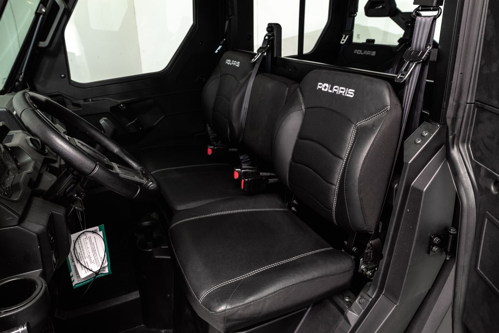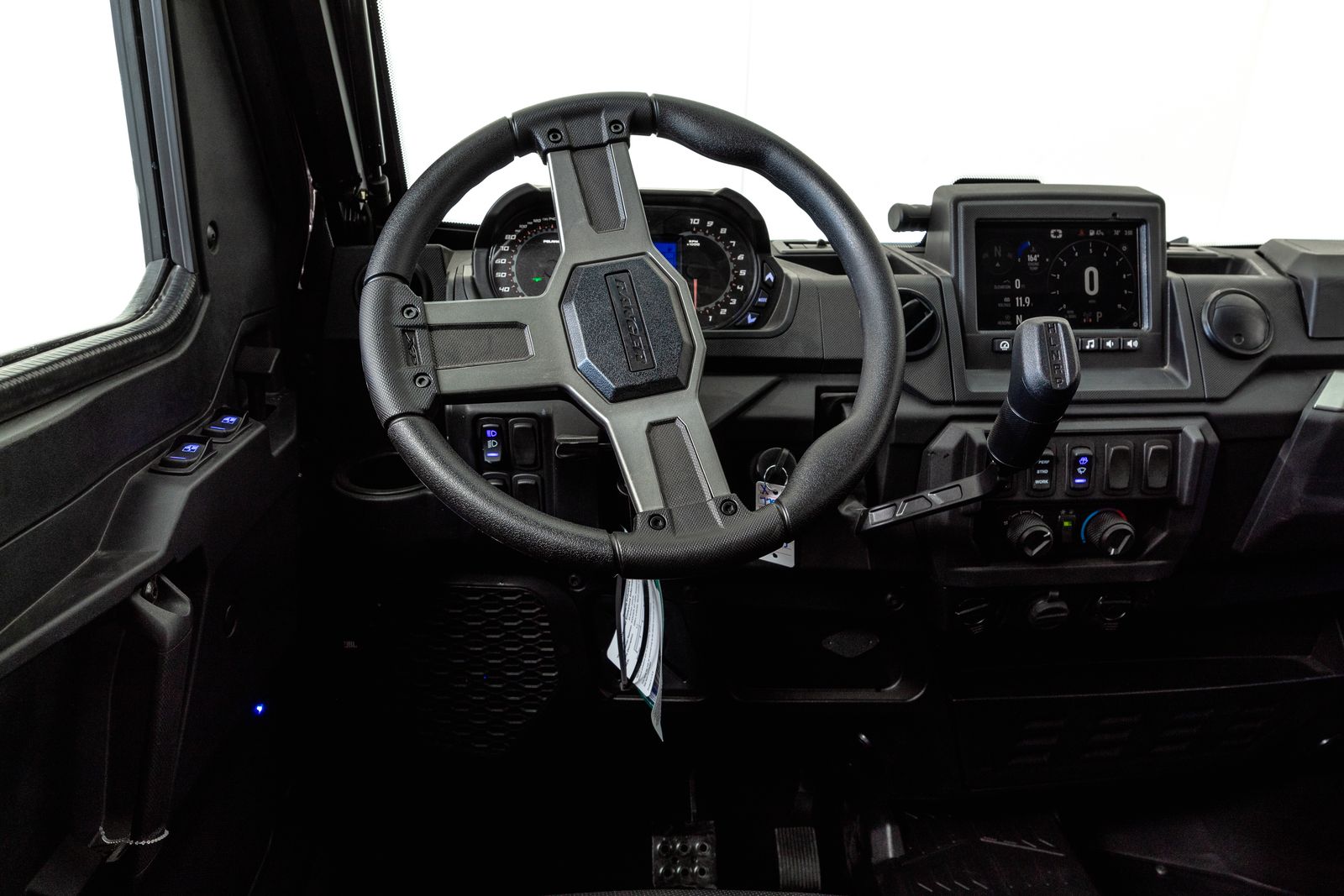 Built for all-season use, this Ranger Crew XP 1000 NorthStar Ultimate keeps you and your passengers comfortable no matter what the forecast looks like. The factory-installed enclosed cab, complete with a tip-out windshield and powered front windows, lets you ride confidently through rain, snow, dust, or cold mornings. Integrated heating and air conditioning give you full climate control year-round, and the variable AC compressor delivers faster cooling and lower temperatures even at idle or low RPMs.