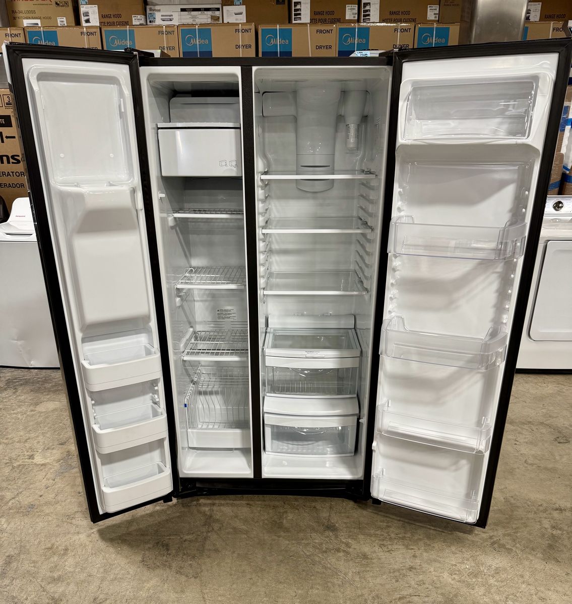 GE 36 Inch Side-by-Side Refrigerator with 25.3 cu. ft. Capacity, 4 Glass Shelves, Gallon Storage, Enhanced Shabbos Mode Capable, External Ice/Water Dispenser, and Auto Ice Maker: Fingerprint Resistant Stainless Steel